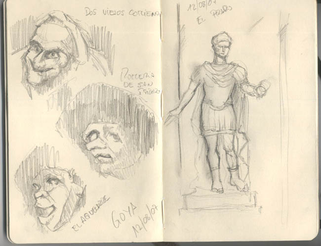 Mis bocetos del viaje a Madrid se pueden ver en mí blog para los que estén interesados. Además, están los de todas las excursiones a museos de Galicia que hice este mes de agosto. Hay más de 20 o 25 páginas de mis moleskine. Estos son solo de muestra.
