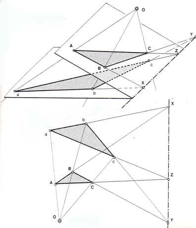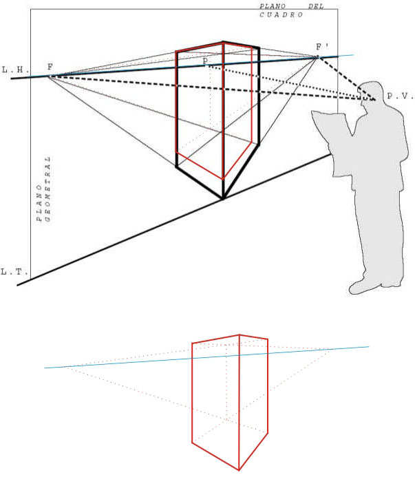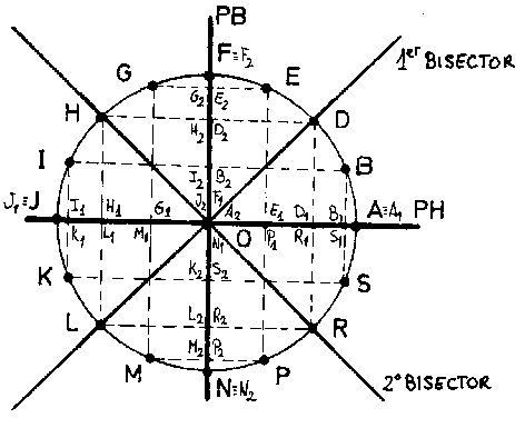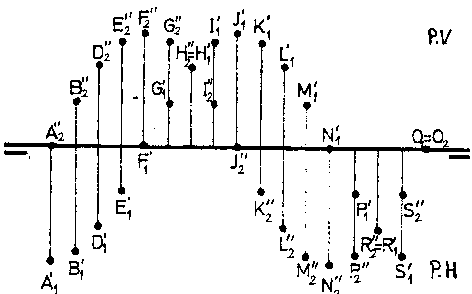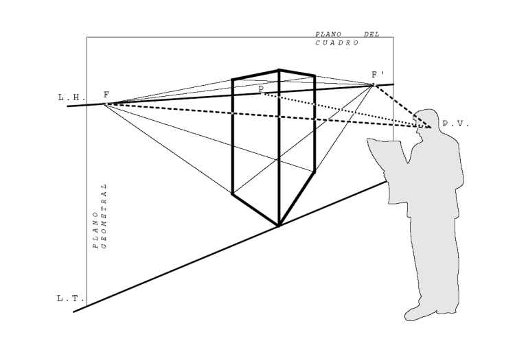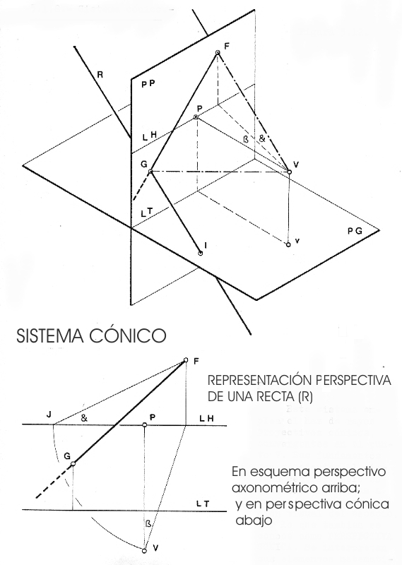 En el sistema diédrico el espacio queda dividido en cuatro partes iguales, por medio de dos planos perpendiculares entre sí, llamados plano de proyección vertical y plano de proyección horizontal. Estos dos, como cualquier par de planos que no presenten la particularidad de ser paralelos entre sí, se cortaran en una recta, recta conocida por linea de tierra (Lt).