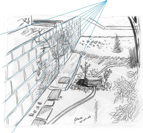 La misma oficina, pero del otro lado, dos puntos de fuga cercanos el uno del otro para exagerar la perspectiva y deformar la realidad.