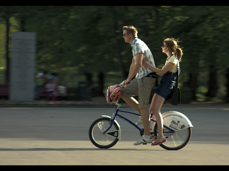 Chula. Yo estoy persiguiendo algo así, pero dándole una vuelta, situación: paso de cebra masificado, 30 personas cruzan a un lado, y 1 persona cruza hacia el otro, intentar sacar a esa persona nítida, y el resto movidos a dos velocidades diferentes (el fondo por estar moviendo la cámara, y la gente por estar también en movimiento). Es complicado, pero puede quedar resultón. Saludos.