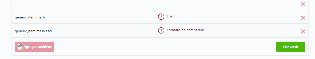 He intentado convertir el archivo pero uno me da error, y el otro dice que el formato no es compatible.