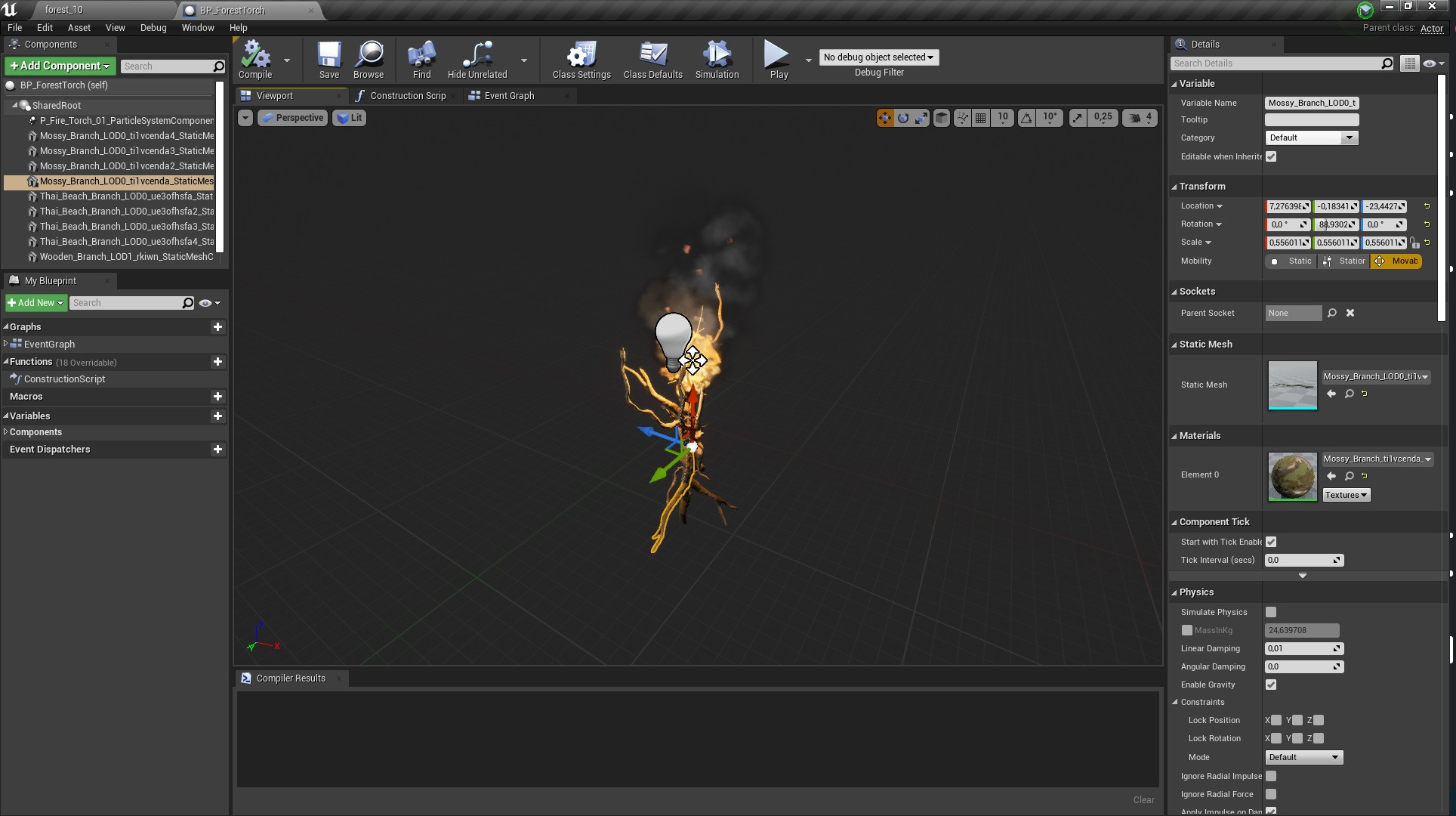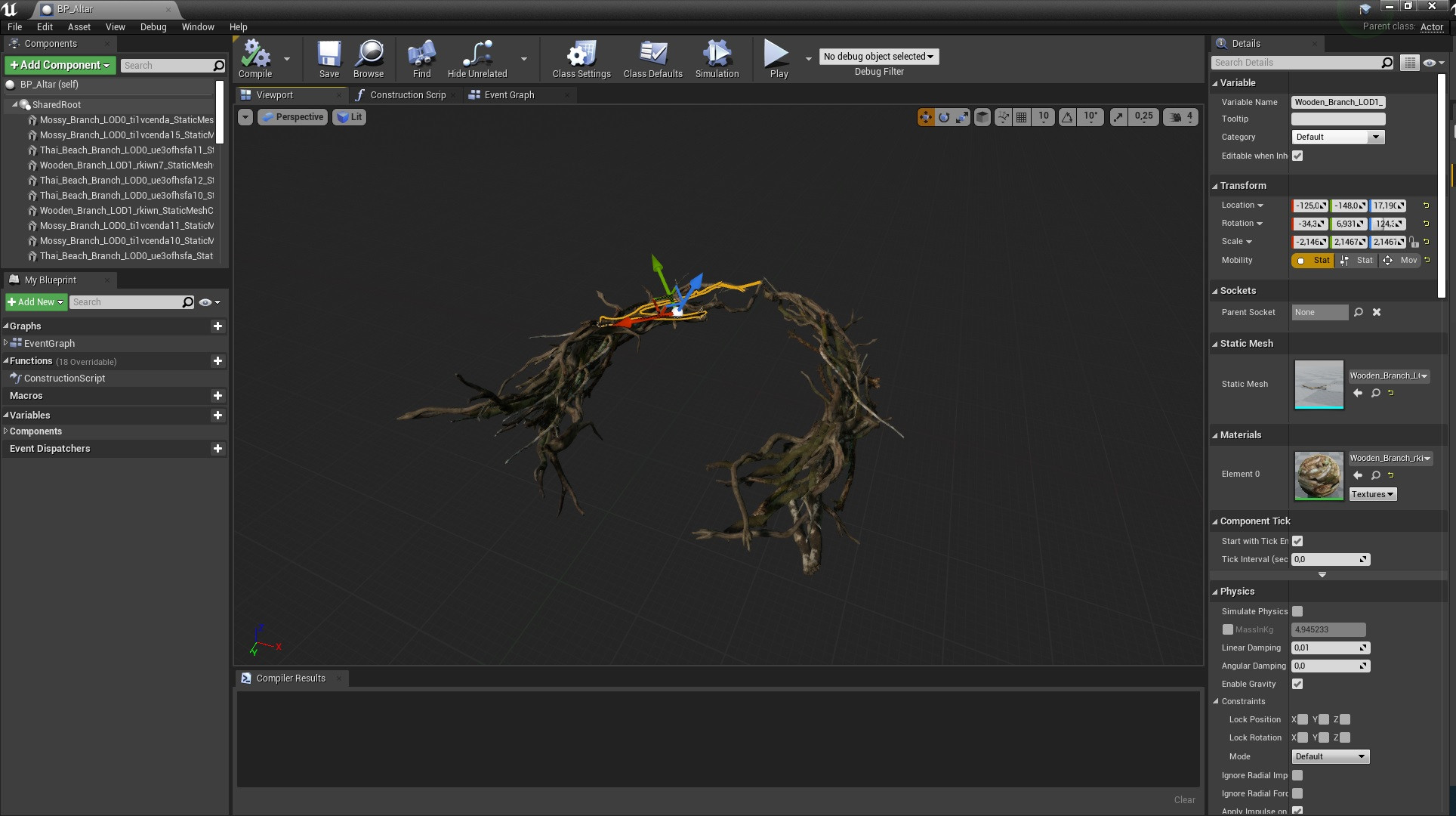Todos los objetos en el mapa, además de los árboles, fueron sacados de Megascans. Las antorchas y el altar lo creó a través de un plano en Unreal Engine 4, usando ramas y fuego descargado de Epic Games. La investigación de los activos correctos para el mapa fue la parte más interesante pero, al mismo tiempo, difícil la más difícil del proceso, ya que afectará la creación del estado de ánimo general de la composición.