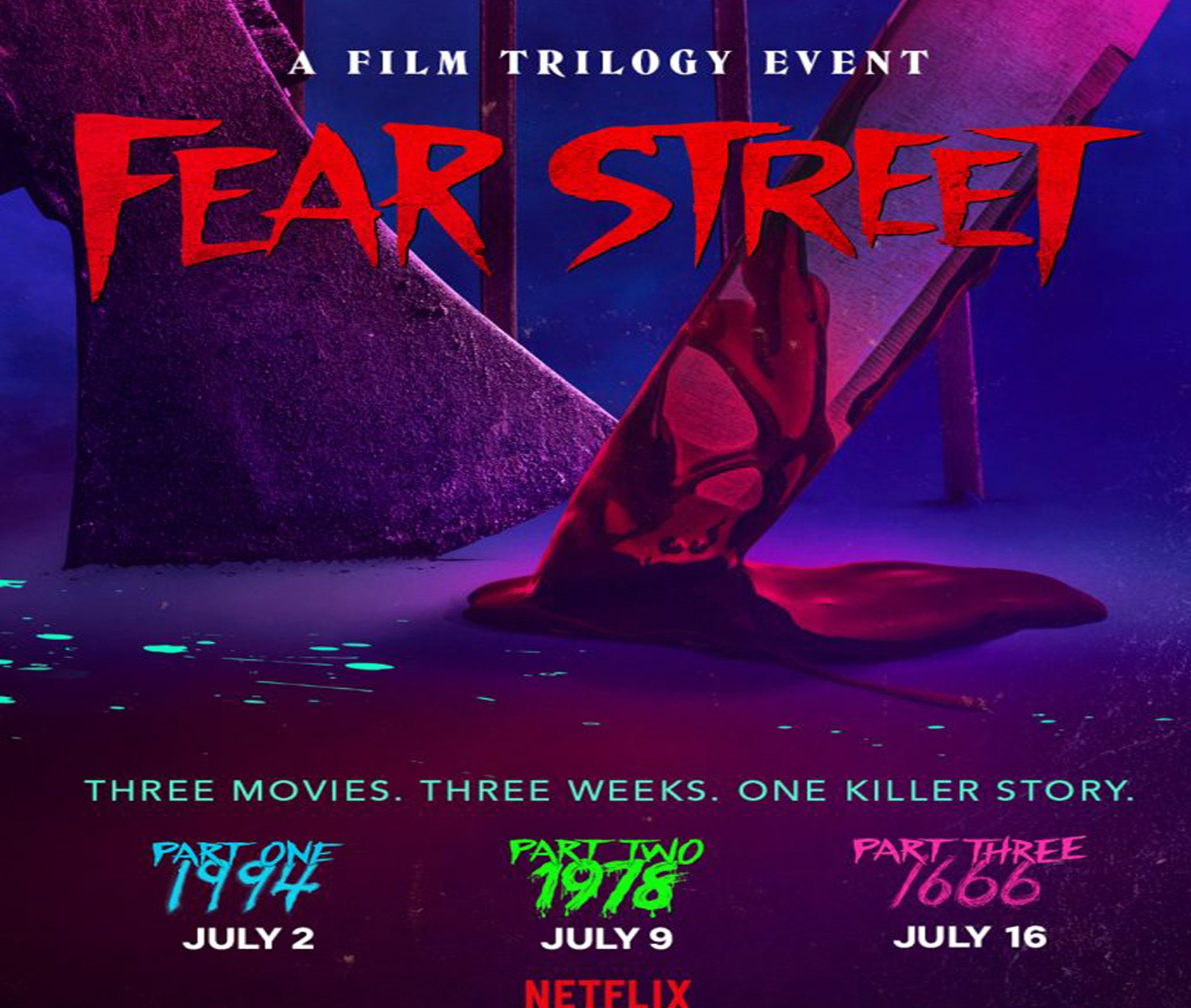Una de las compañías de VFX encargadas de dar vida a esta trilogía es Rodeo FX, la cual después de un intrincado y bastante retorcido trabajo de criaturas en la temporada 3 de Stranger Things, Paul Graff, el supervisor de efectos visuales de Netflix en la trilogía de "La calle del terror", regresó a Rodeo FX con otro proyecto. Esta vez para la antología de terror de tres partes Fear Street. Abarcando desde 1666 hasta 1994, así que los artistas de Rodeo FX se pusieron manos al teclado y se sumergieron directamente en el pueblo de Shadyside y su malvada maldición.