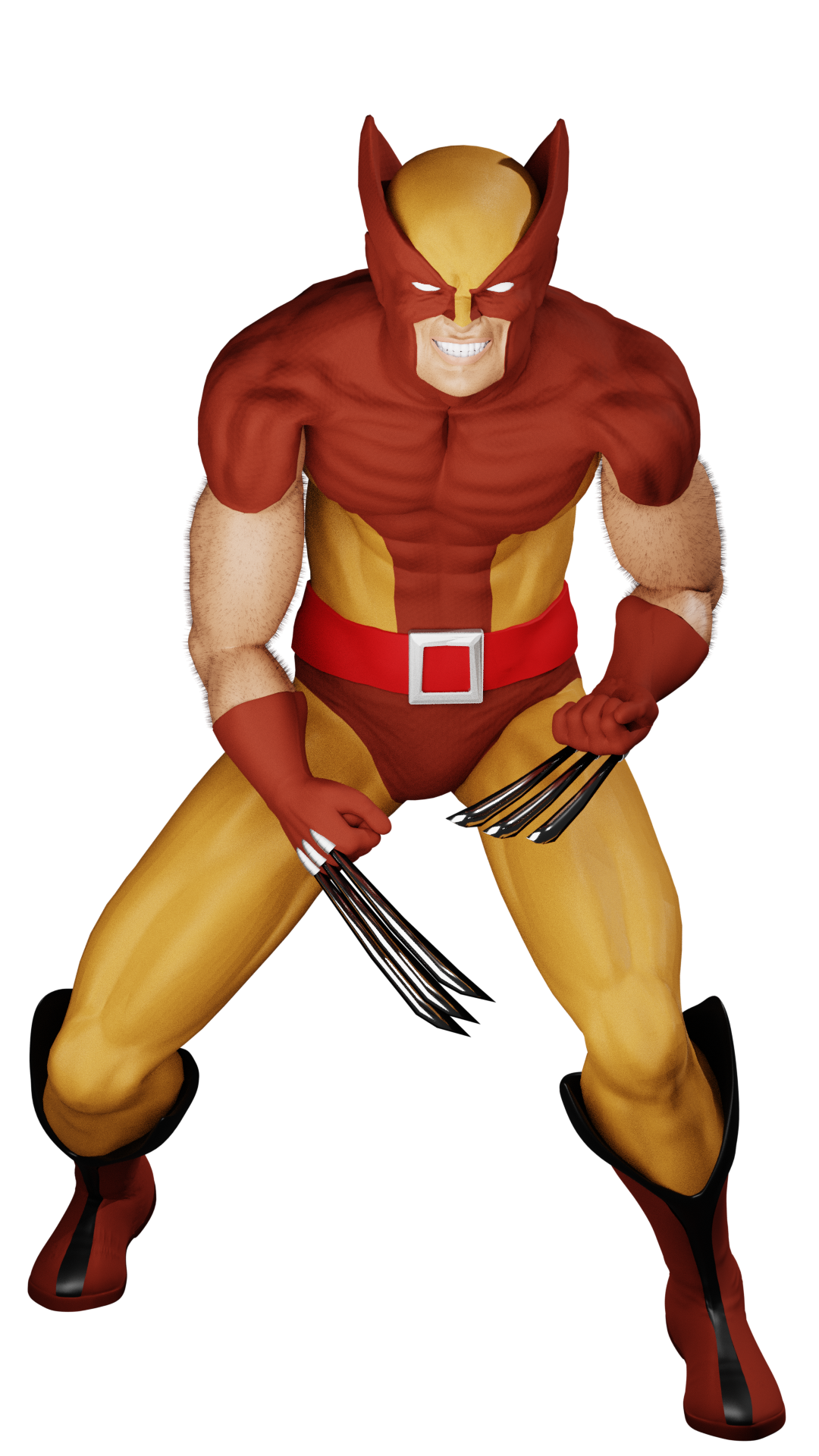 He estado retocando un poco la cara, el traje (he encontrado más fotos para ver como son las líneas), colores, la capa (alargarla un poco más que nada), rehecho el cinturón (era demasiado estrecho)... casi todo un poco, os dejo unos renders.