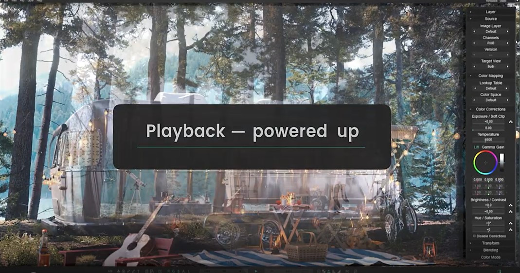 Incluyen la opción de comparar hasta cuatro entradas a través de wipes A/B, para exportar videos en formato MP4 y soporte para OpenColorIO 2 (OCIO 2), la última versión del estándar abierto de gestión de color.