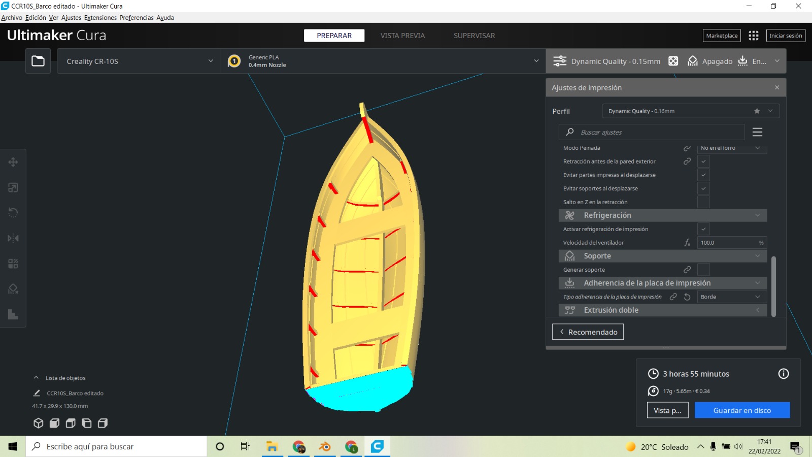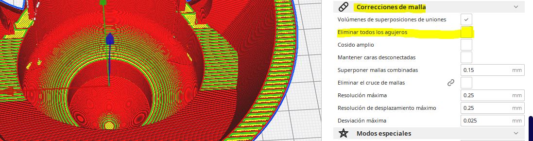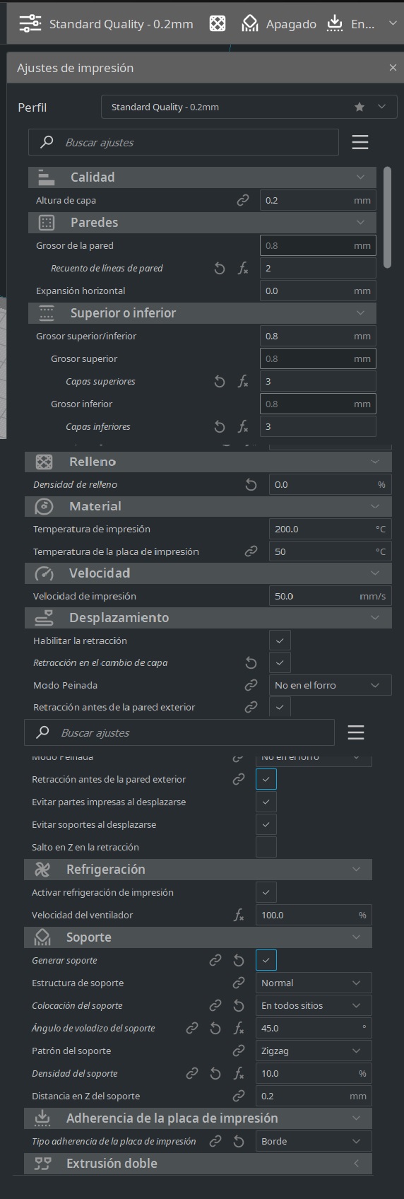 Dejo una captura de los parámetros que ando usando. (He probado a bajar incluso la densidad del soporte al 4 por ciento pero no cambia apenas nada.