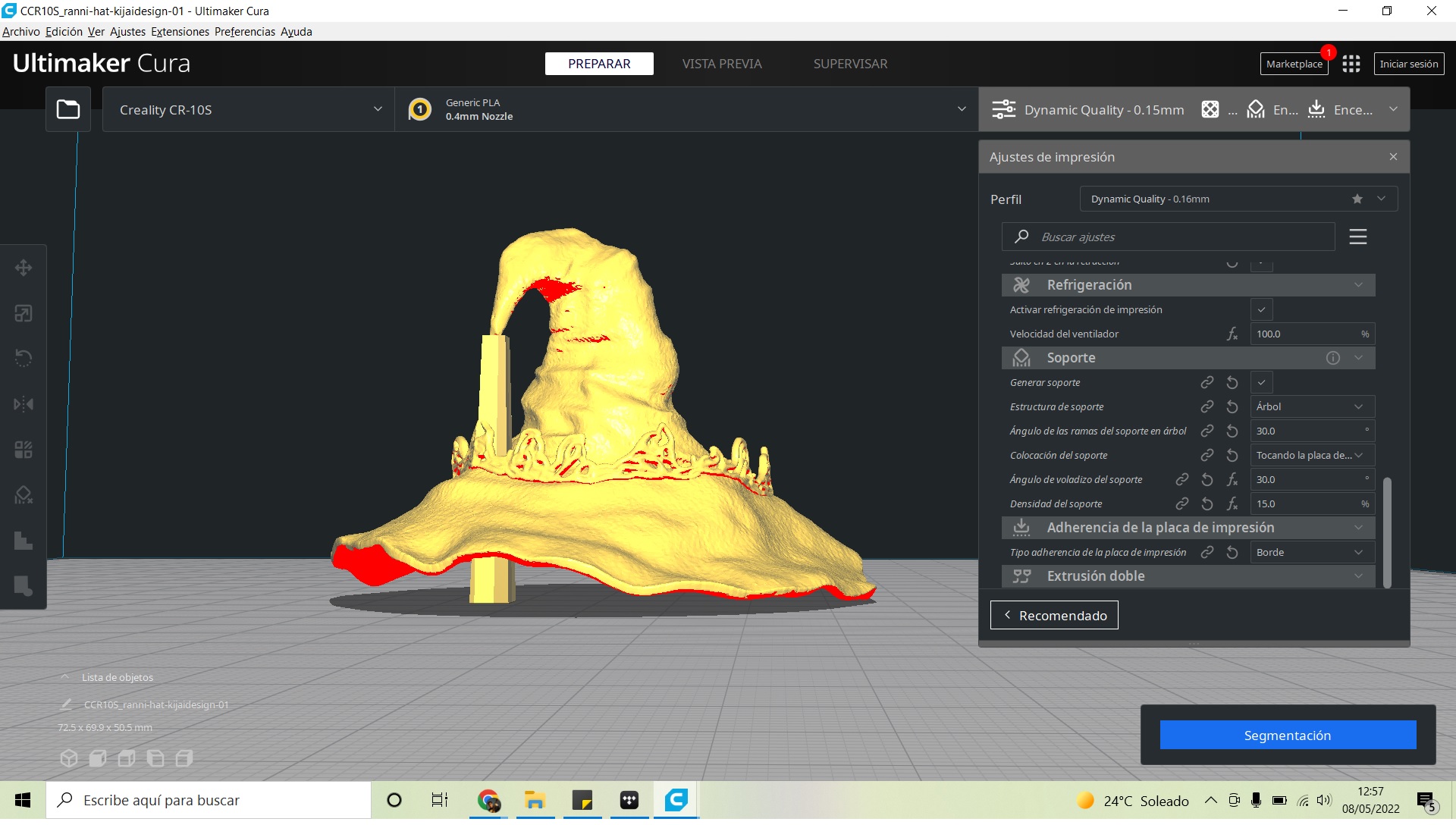 Muy buenas, resulta que estaba poniendo a imprimir el sombrero de esta figurita (https://www.myminifactory.com/es/obj...e-witch-218573 aquí se puede descargar el modelo). Y nada, poniéndole un bloqueador de soporte para que no me lo rellene, como podréis ver, no funciona.