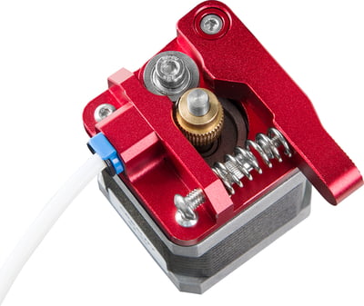 Esa parte es la que hace presión junto al que tiene al lado que es liso. Esa parte es la que arrastra el filamento que tiene que pasar entre los dos, Uno está fijo y es liso, y el otro es el dentado y arrastra.