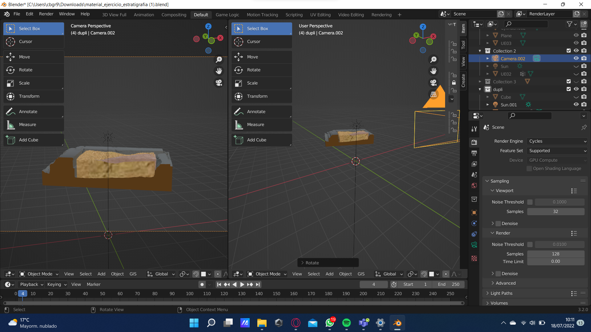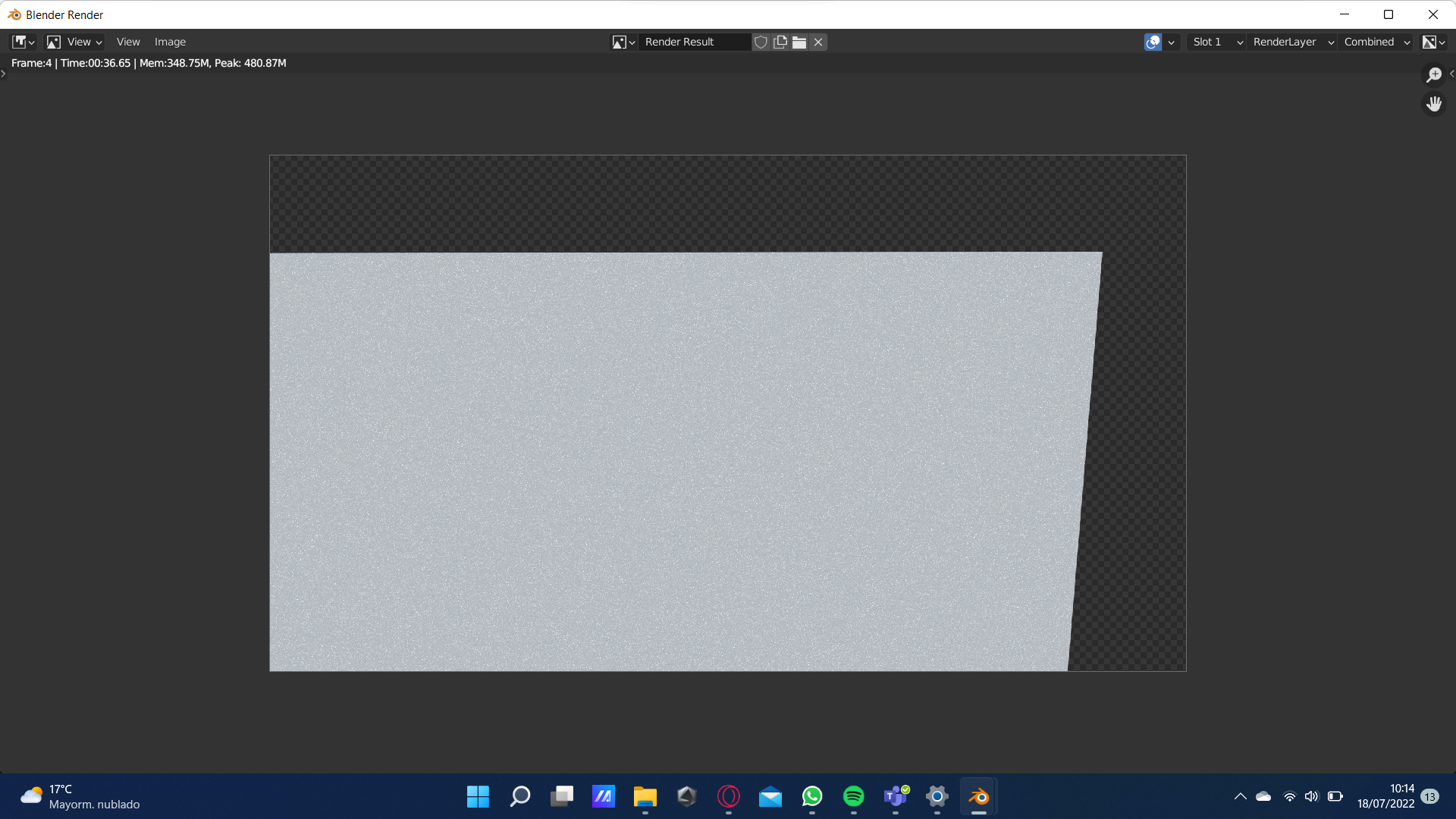 Buenos días. Estoy teniendo problemas con el renderizado de blender. No sé por qué, pero me renderiza media esquina en color gris, que tampoco corresponde a lo que enfoca la cámara.