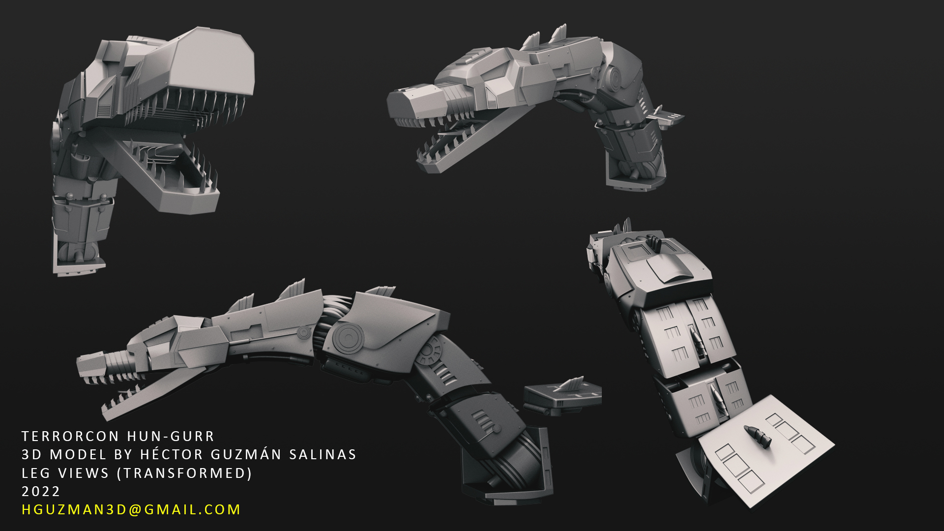 Pasando a lo nuestro, presento mi tercer modelo de transformer que a diferencia de Shockwave y Jazz, este está animado y puede transformarse. Con más de 3.6 millones de polys, y más de 40 horas de render combinado, es el proyecto individual más intenso que he hecho hasta el momento. Se trata de Hun-Gurr, el líder de los Terrorcons de los Transformers G1. Además es mi primer modelo apto para imprimir (la estatua al menos) así que espero en un tiempo poder llevarlo a forma física.
