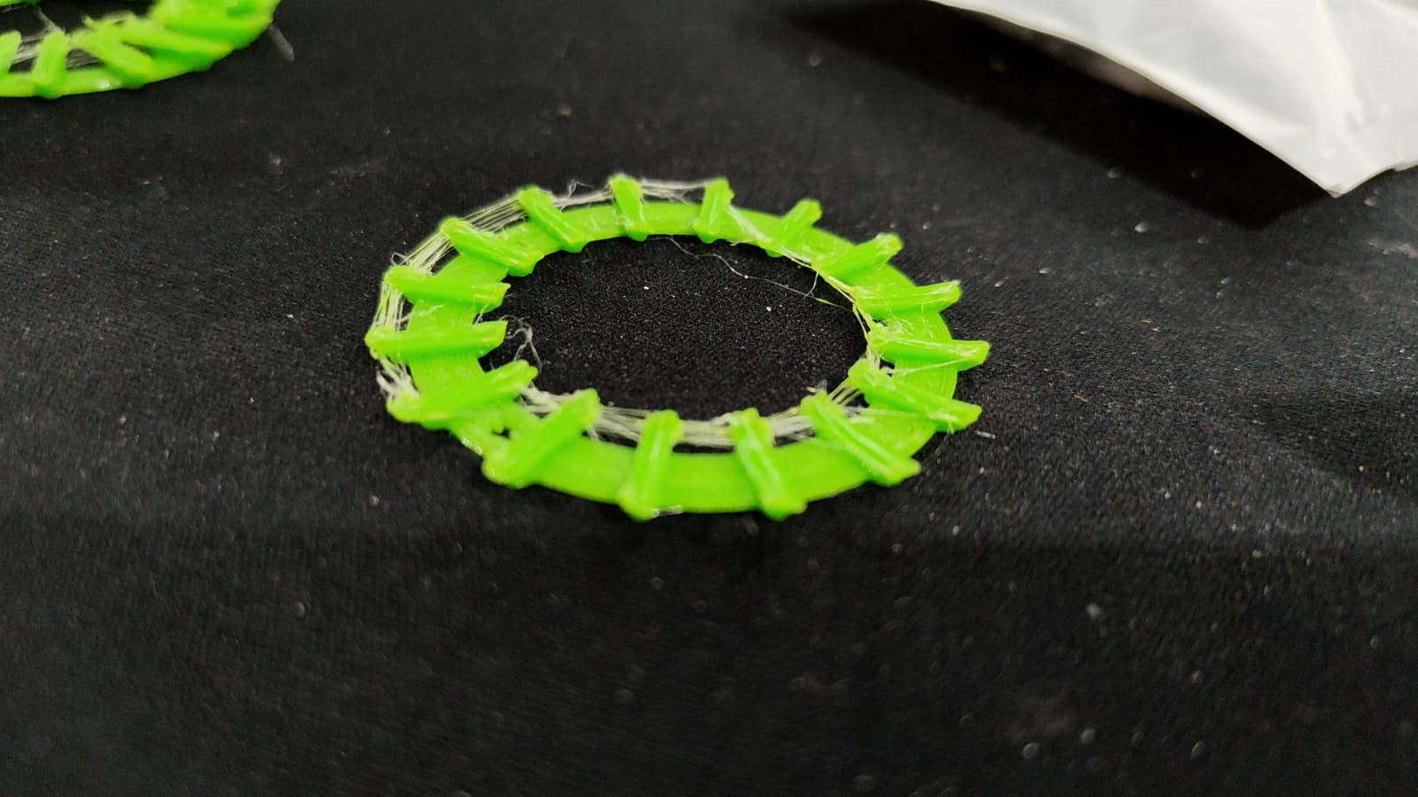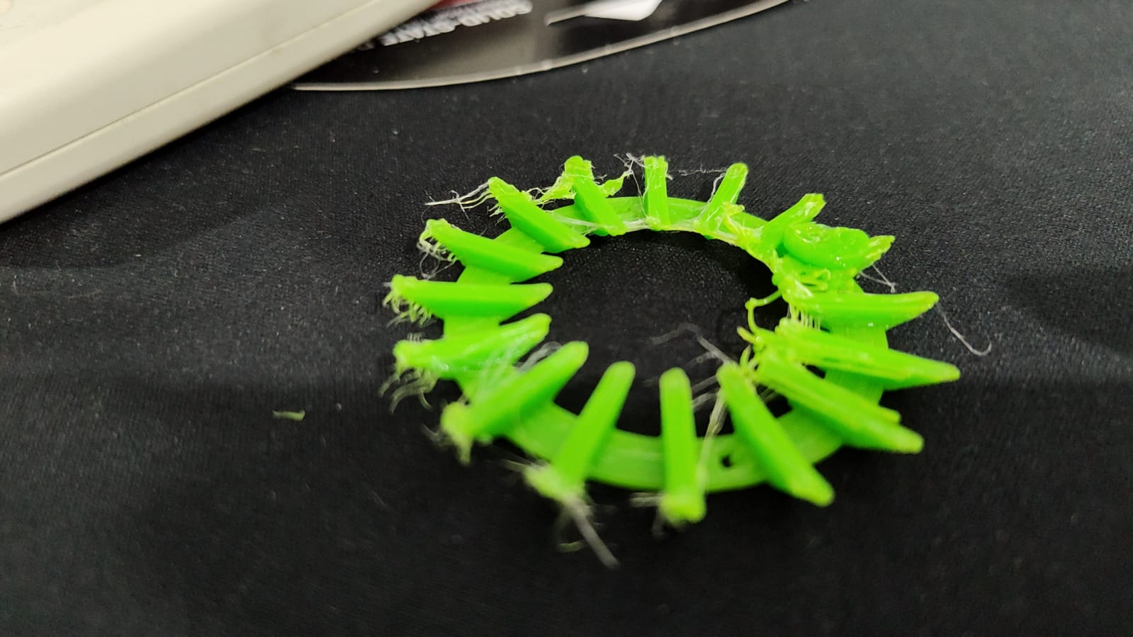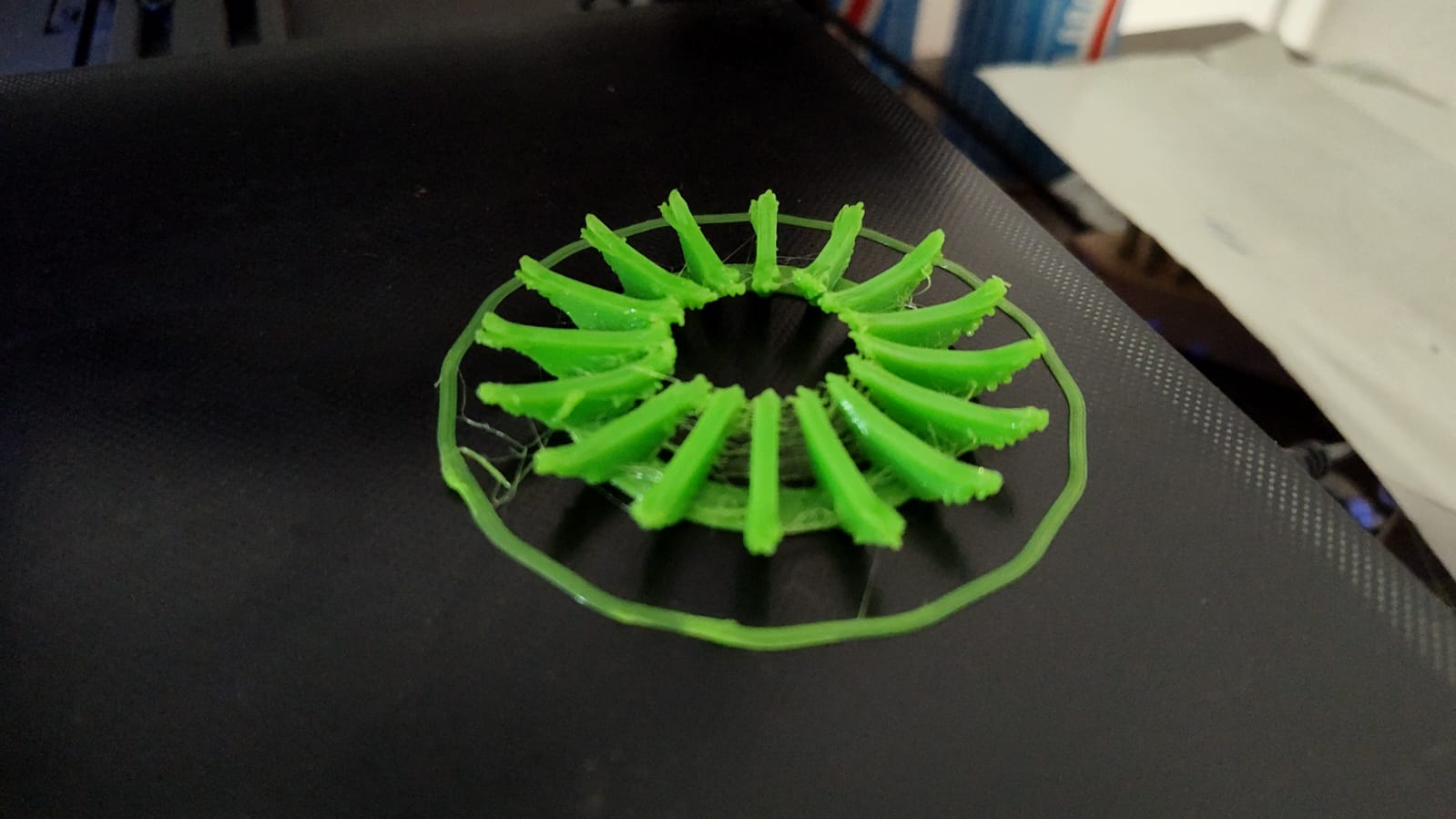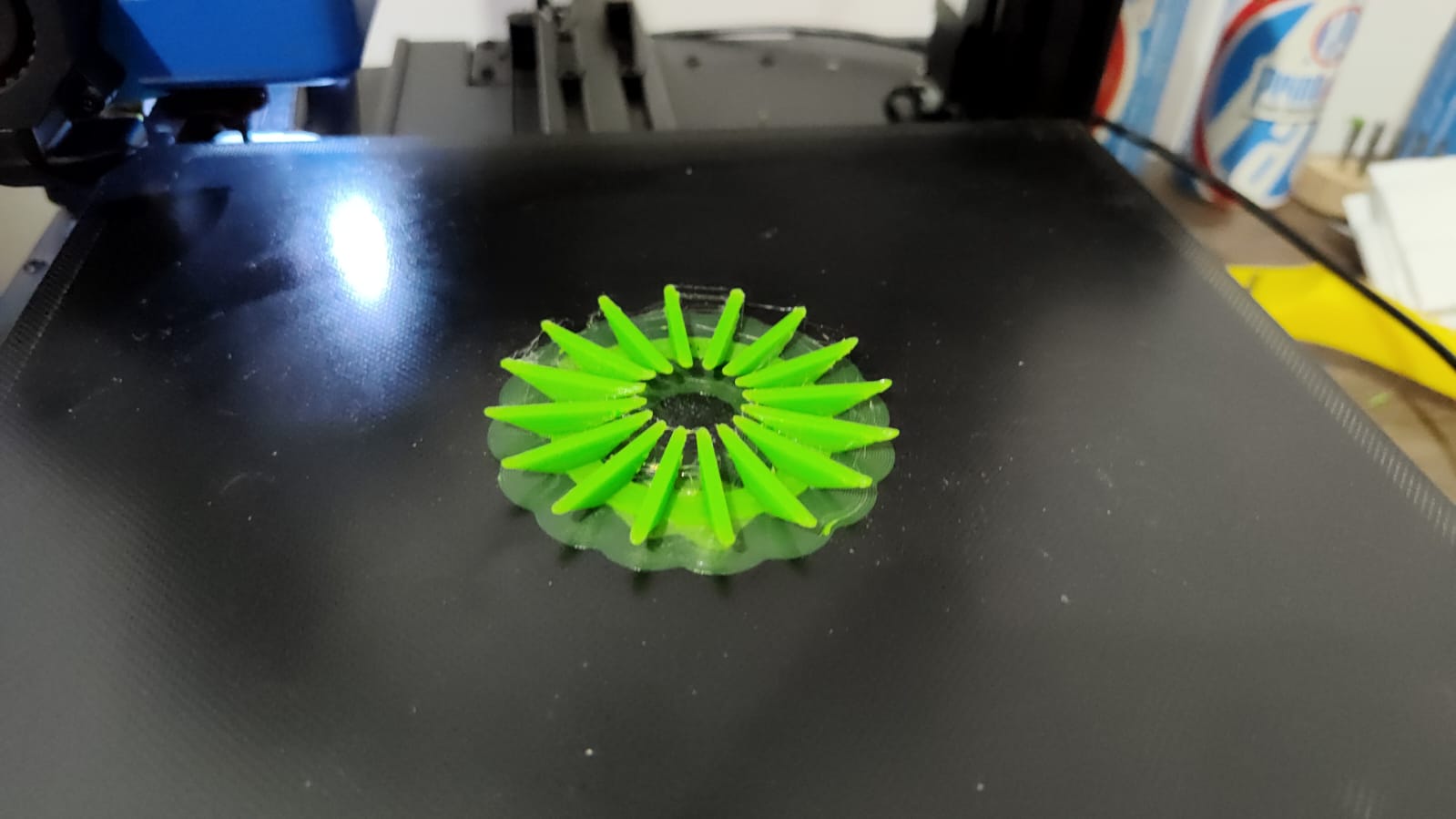 Como podemos ver en la imagen, fundir nuestro plástico a una temperatura excesiva provocará que las piezas se vean deformadas, con el centro de la capa hundida. Esto se debe a que al fundirse a una temperatura demasiado alta, el material no tiene tiempo de enfriarse, y es por esto que las capas pueden quedar caídas o hundidas.