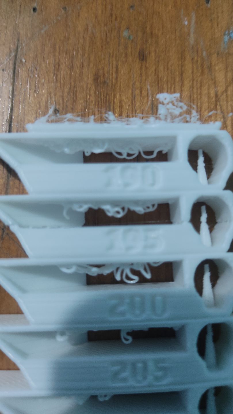 El problema vino al hacer la torre de temperatura, al terminar la impresión todas las capas que no tienen ningún soporte, es decir, las partes en donde la impresora deposita el filamento prácticamente en el aire, en todas las temperaturas se chorrea el PLA (adjunto Imagen) Que es un PLA de artillery blanco.