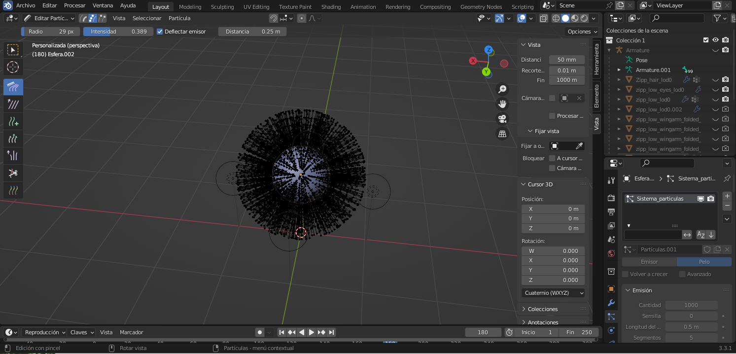 hola e hecho lo que me dijistes y no sucede nada si miras en las fotos las particulas si funcionan pero el cabello no ,e reinstalado blender varias veces y nada tambien drivers de video pero sin resultados igualmente muchas gracias por responder, encontre otra forma de hacer el cabello con curbas no es lo mismo pero bueno es lo que hay xd