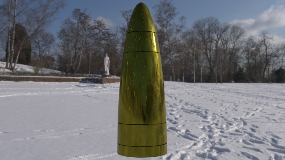 Me puse a practicar un poco las texturas, y puse una imagen Hdr o Hdri (No sabía que me había instalado, pero me funcionaba y lo dejé así ) que está como fondo, hice una bala sencilla y me puse a texturizar.