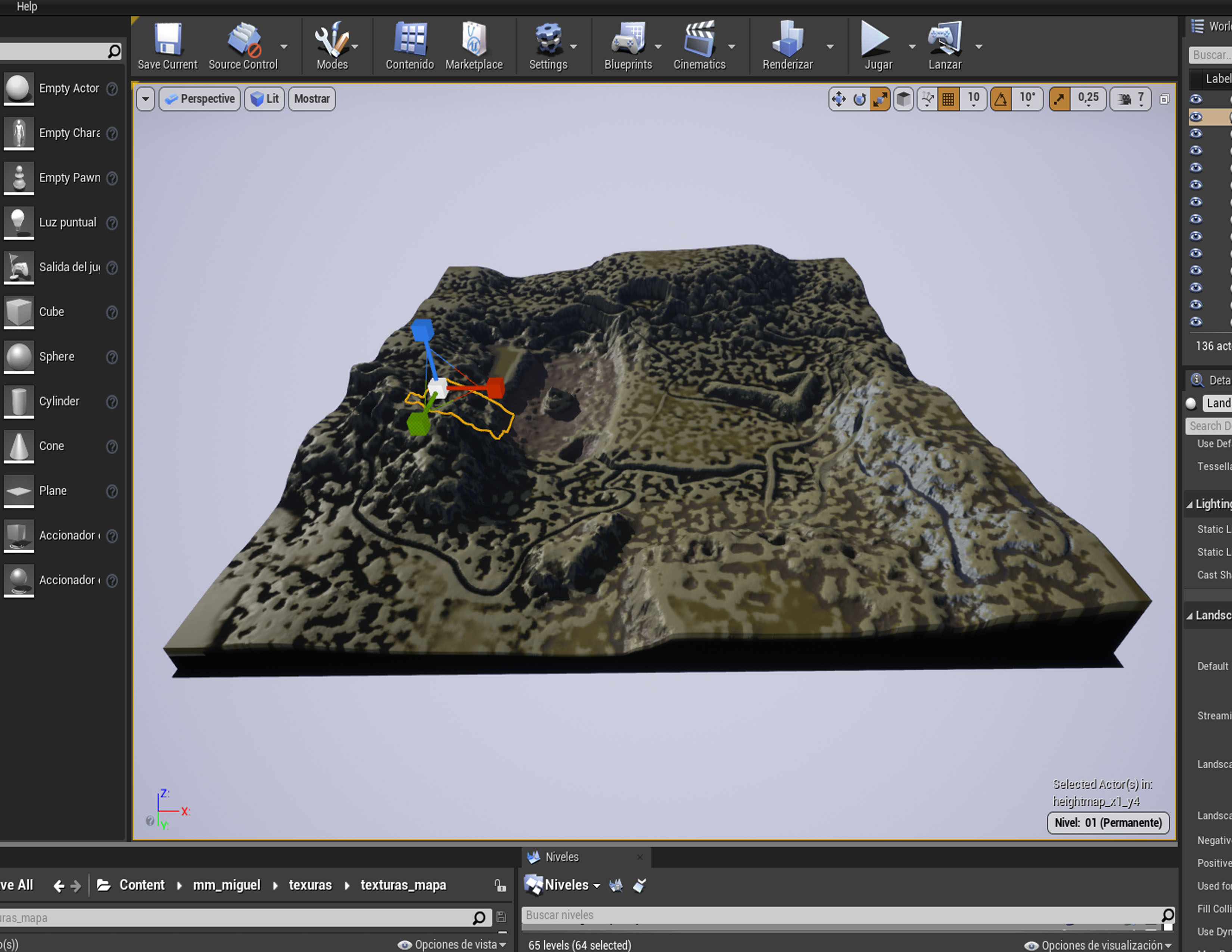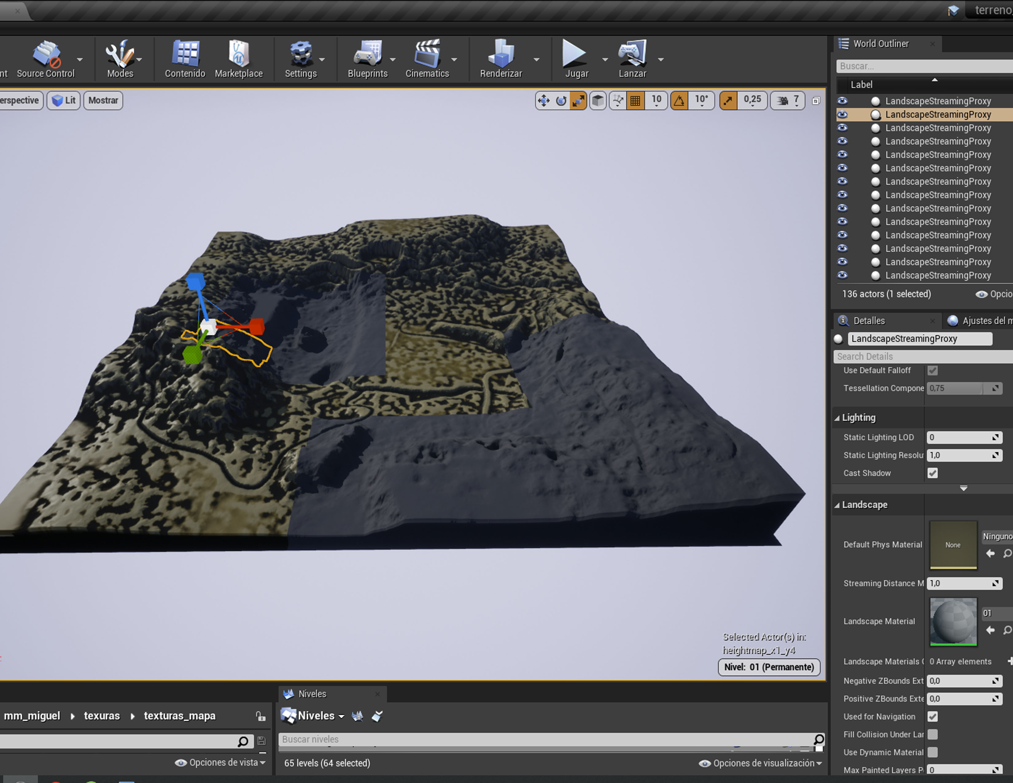 Ajusta la configuración de textura en Unreal Engine: Revisa las configuraciones de textura en Unreal Engine y asegúrese de que se hayan asignado correctamente las texturas y que estén configuradas para su uso en terrenos. Asegúrese de que las texturas se hayan asignado a los canales de textura correctos y que estén configurados correctamente para su uso con un terreno.