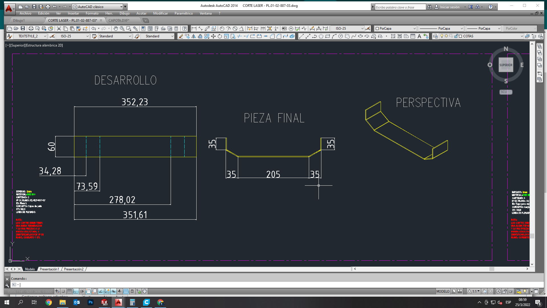 Prácticamente todos los días hacemos plantillas en ACAD para enviar a cortar y/o plegar a distintos proveedores según necesitemos corte por agua, laser u oxicorte y soy el encargado del dibujo de tales plantillas.