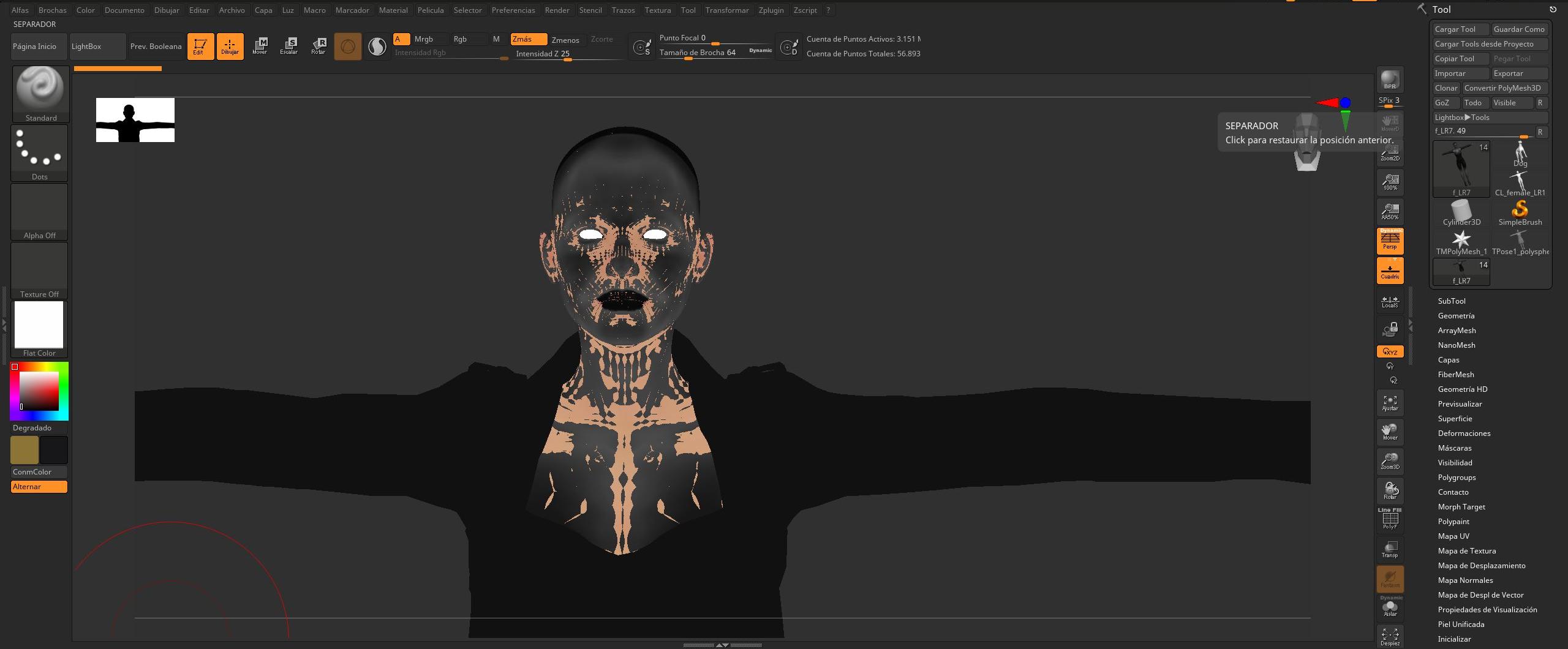 Me enviaron un proyecto en ZBrush, pero al abrirlo me lo muestra mal, no se como hacer que lo muestre correctamente o si falta algo, gracias por la ayuda.