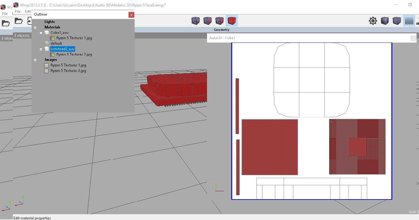 Hola gente, quisiera saber como puedo poner 2 texturas o más en Wings 3d. Cuando intento crear la textura de cube1_auv se me elimina la de octotoad2_uav y viceversa, alguien me puede decir cómo hacer para que no suceda. Espero no comenzar de cero.