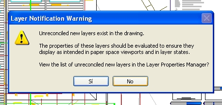 Qué tal foreros. Pues tengo el problema que el AutoCAD me sale un mensaje que tengo problemas con layers (capas), aunque nunca me ha dado problemas mayores me surge la curiosidad a qué se debe, en mí proceso de trabajo por lo general tengo archivos base que me sirven para armar mis planos finales con estos archivos base (referencias), y al parecer hay radica el problema, últimamente me sale este mensaje: