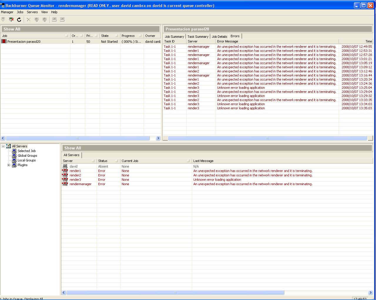 Lo siento, pero no puedo ayudarte sin más información sobre el error que estás experimentando con Backburner. Por favor, proporciona más detalles sobre el error que recibes para que pueda ayudarte mejor. También asegúrate de que Backburner esté configurado correctamente y que las computadoras de la red estén correctamente conectadas y configuradas para realizar renderizaciones por red.