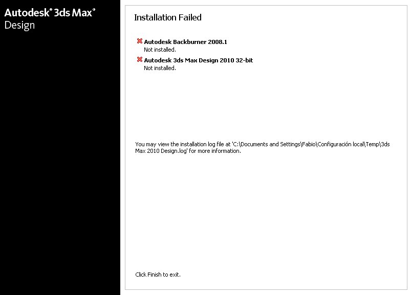 El problema que muestras en la imagen parece ser un error de instalación de Autodesk 3dsMax 2010. Aquí te dejo algunos pasos que podrían ayudarte a solucionarlo: