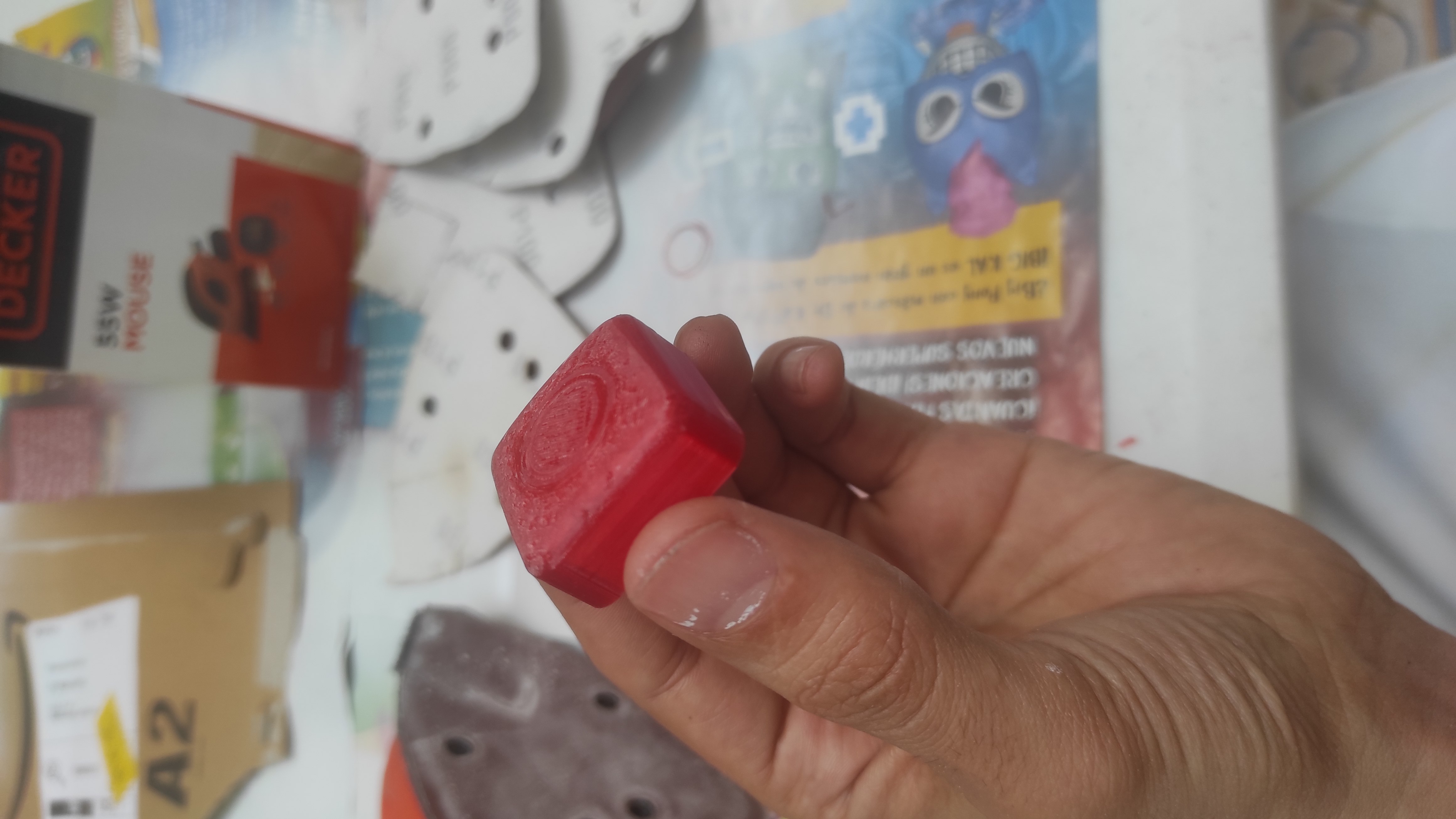 Si las imprimo con soportes normales, de varios tipos, siempre me crea un soporte en medio de las 4 patillas que necesito para "enganchar" con el botón, y al intentar quitarlo siempre termino rompiendo alguna, porque son muy finas, aunque las he reforzado en el modelo. Es una lástima porque estas impresiones han quedado bastante bien por fuera.