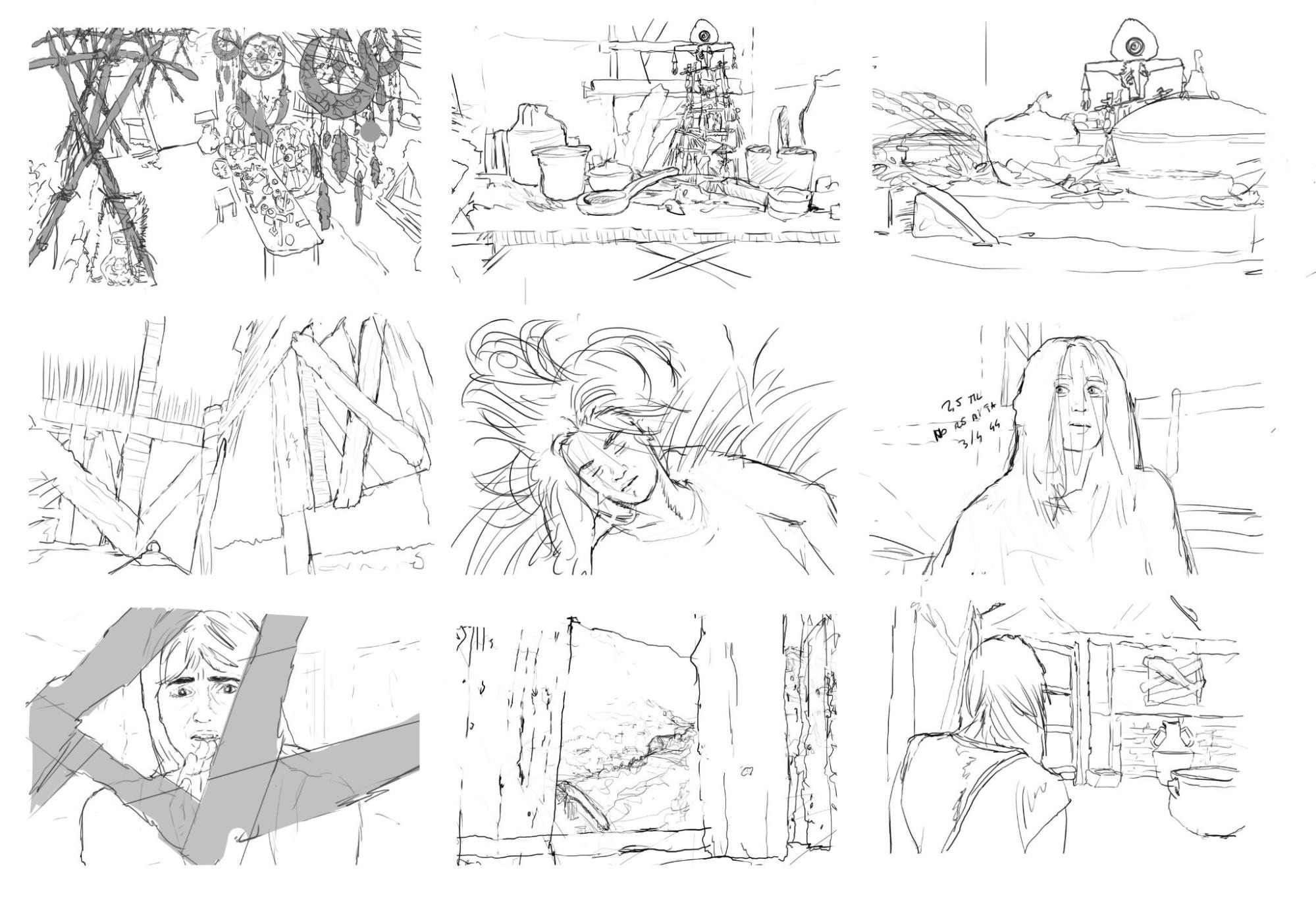 El autor dibujó varios storyboards para planear la historia de un cortometraje, pero al final, casi ninguno de ellos se usó debido a que la actuación facial de los personajes generados por computadora en tiempo real no fue del 100%. A pesar de los cambios de ideas, trabajar en el moodboard en ambos estilos, tradicional y digital, no fue una pérdida de tiempo, ya que le permitió al autor crear algunas ideas de arte conceptual y diseño con herramientas como Procreate y Unreal Engine. Además, el autor jugó mucho con Lumen y Nanite.