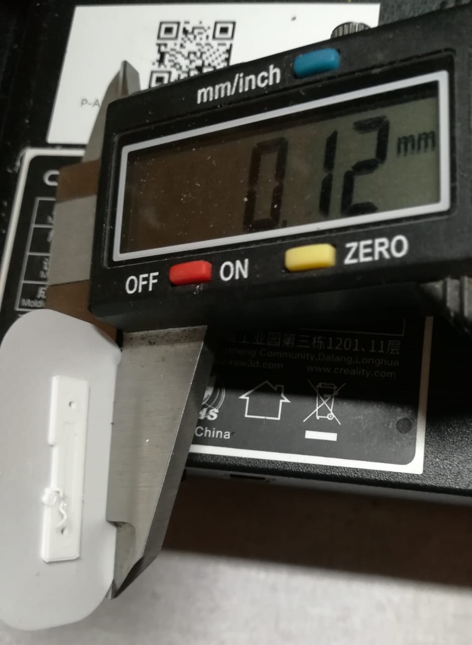 Luego imprimí con PETG un rectangulito de 6x20x1 mm hasta que logré una configuración bastante buena, 70 de flujo y 240º de temperatura. Lo imprimí varias veces seguidas sin problemas, lo único que no me daba el mm de alto, sino 0.75. Más tarde, imprimí sin problemas varias veces la pieza que puse en las fotos del post anterior y las medidas lo mismo, el alto, 16.20 de 16.50 mm. Bueno, al menos ya tenía algo "decente".