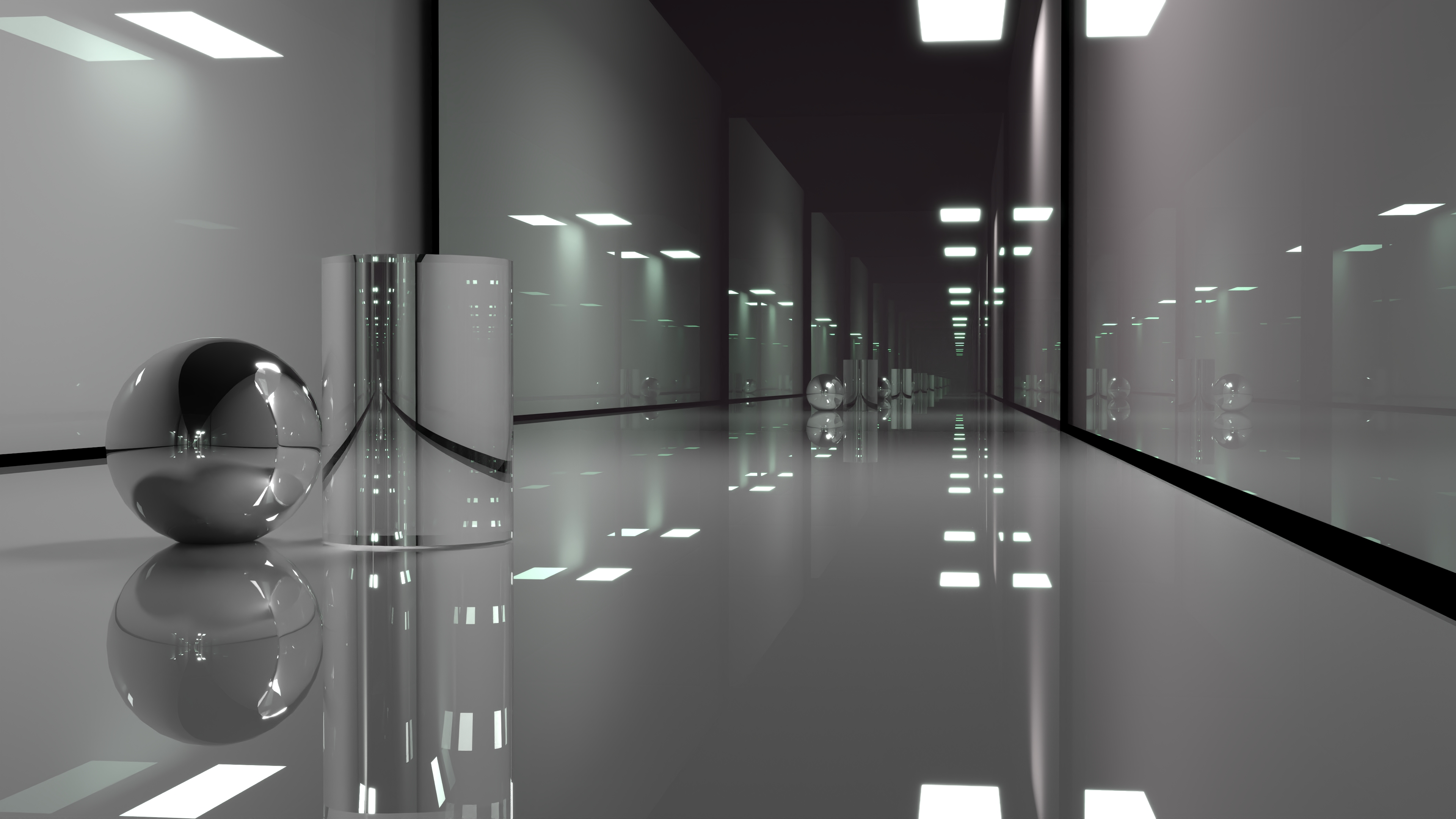 En un bar tomando un café, con iluminación normal a 5000 kelvin, sentada entre dos espejos, pude ver mi propia imagen replicada 9 veces. Siendo la última casi una figura oscura que se fundía en un fondo verde. Es decir, para igualar la profundidad de reflejos especulares de la realidad, es suficiente con ajustar el deslizador a 9.