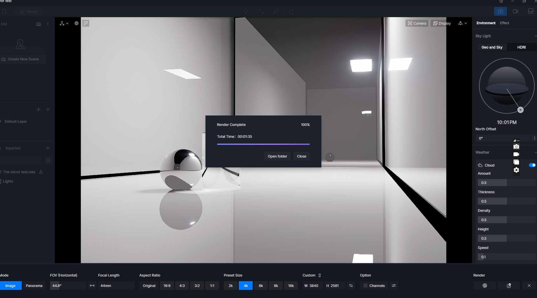 Si lo pones en 2, obtienes un reflejo de otros materiales reflectantes nada más. (Ahí se queda D5 Render).