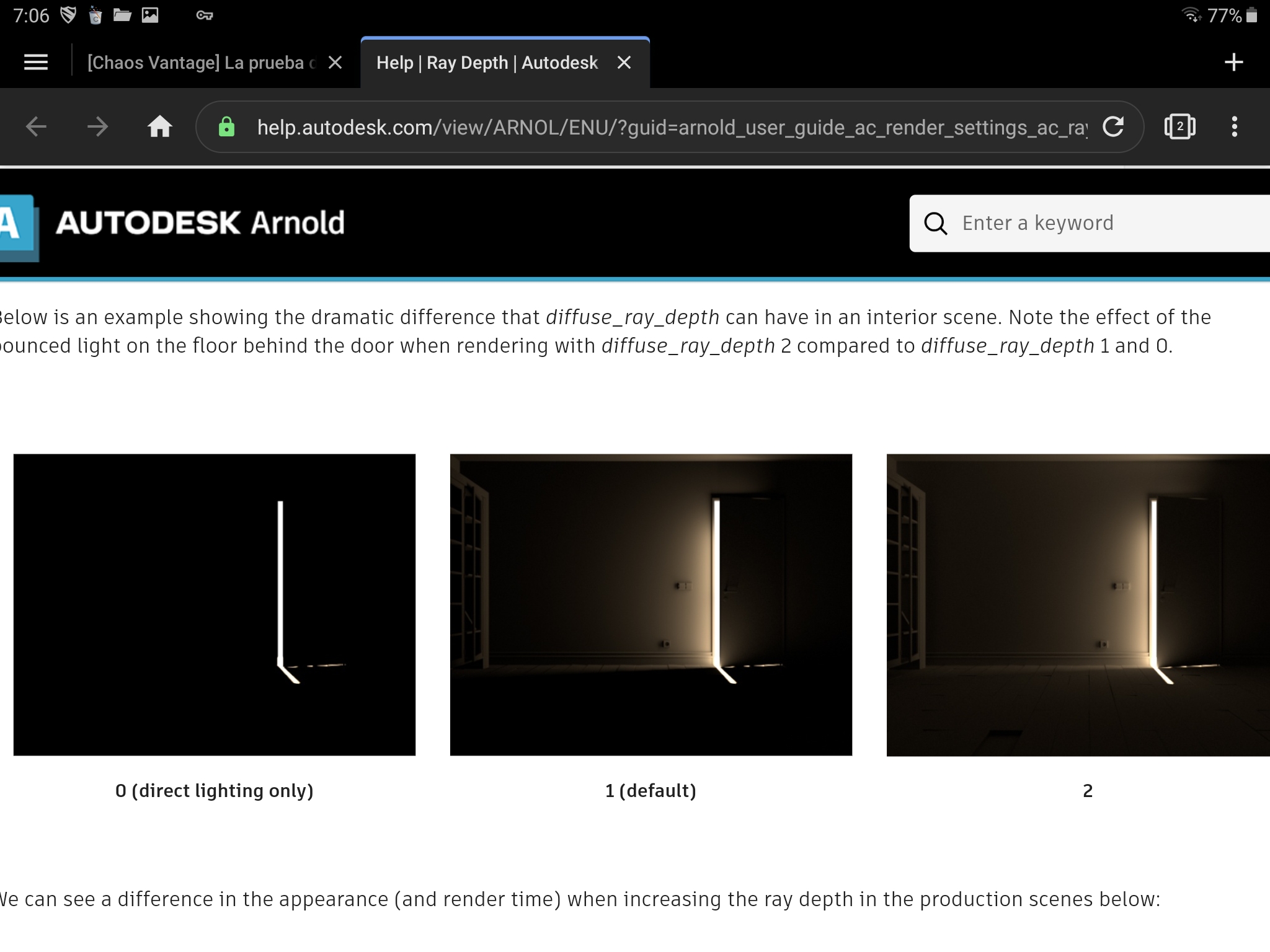 Todos estos deslizadores en Vantage son similares a los de Vray por CPU.
