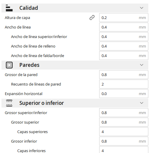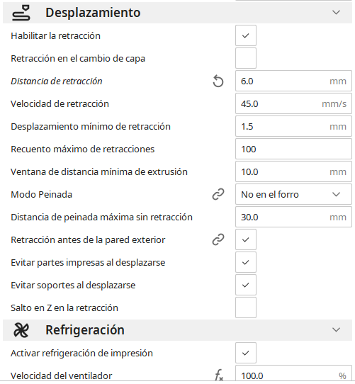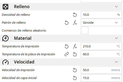 - Velocidad de impresión: 40-50 mm/s