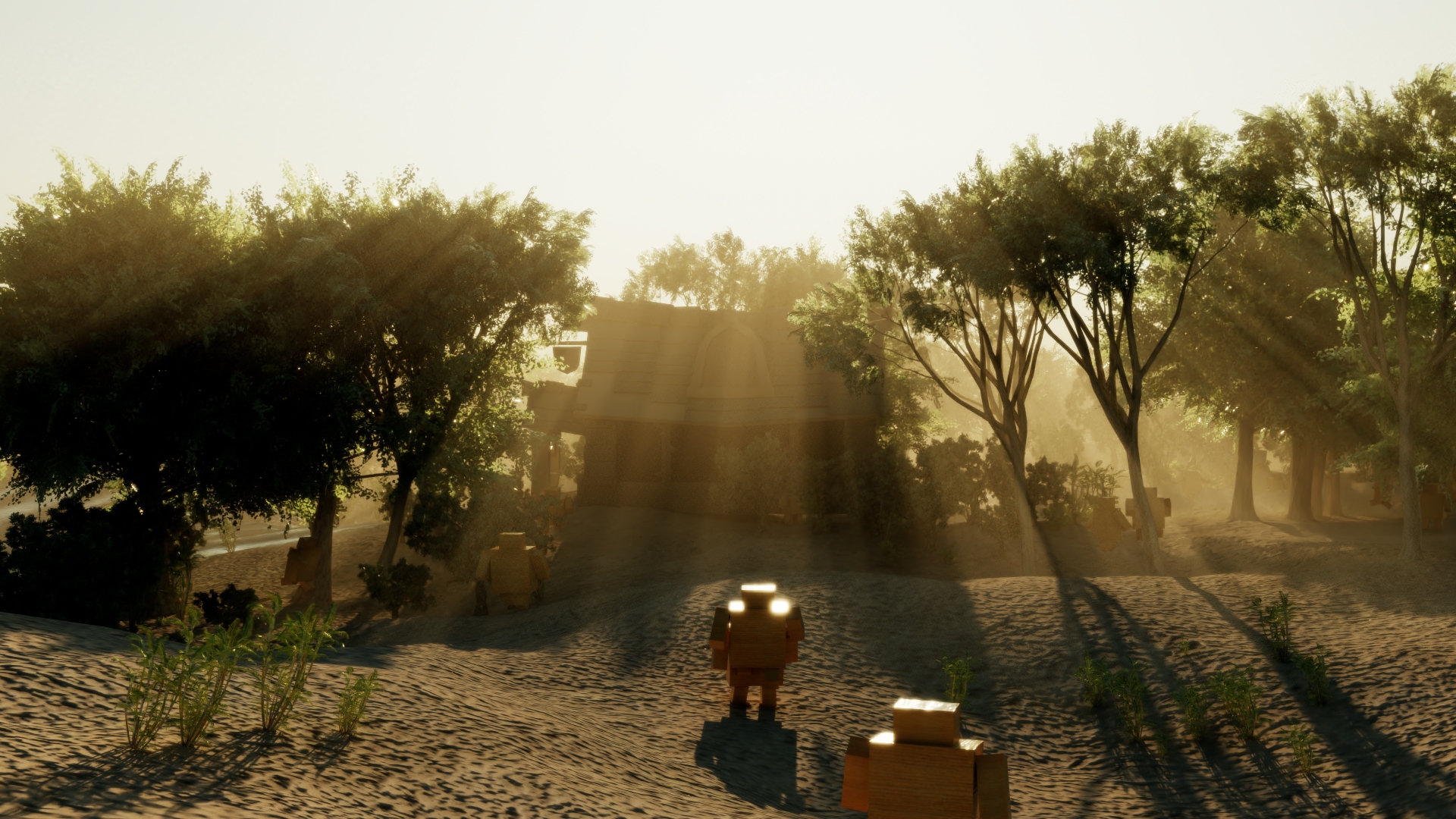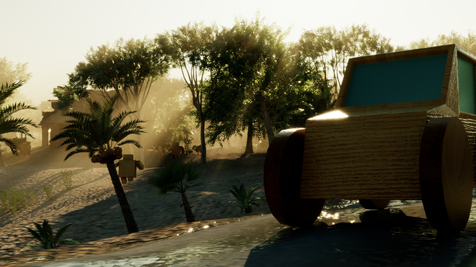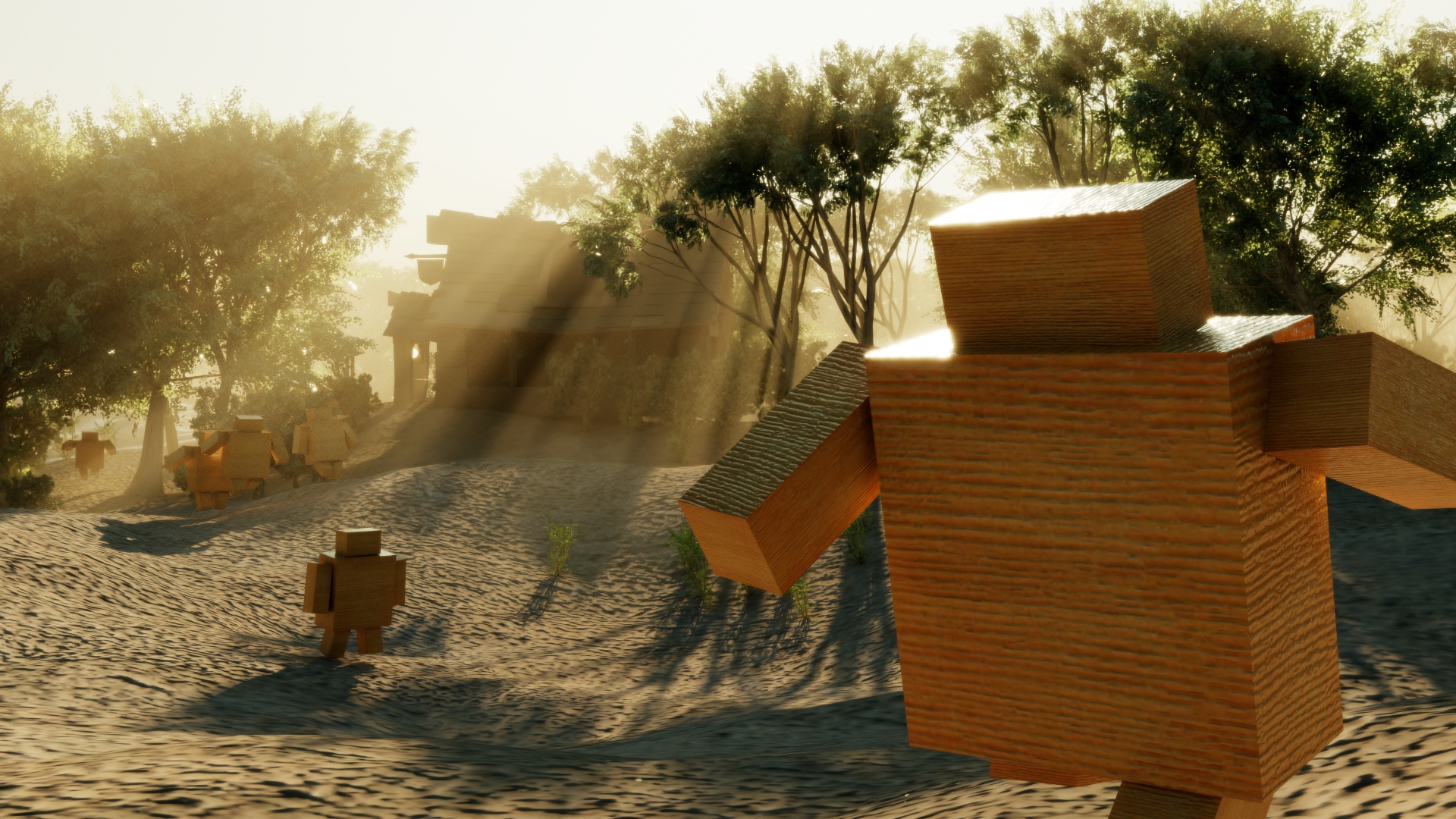 La velocidad de render para estas escenas es brutal, teniendo en cuenta que esa vegetación, toda hoja posee mapa de transparencia. Hay miles y miles de etapas de transparencias superpuestas para que la luz pueda atravesar y llegar definitivamente al suelo. Cada etapa está siendo tenida en cuenta en la voxelización de la niebla volumétrica.