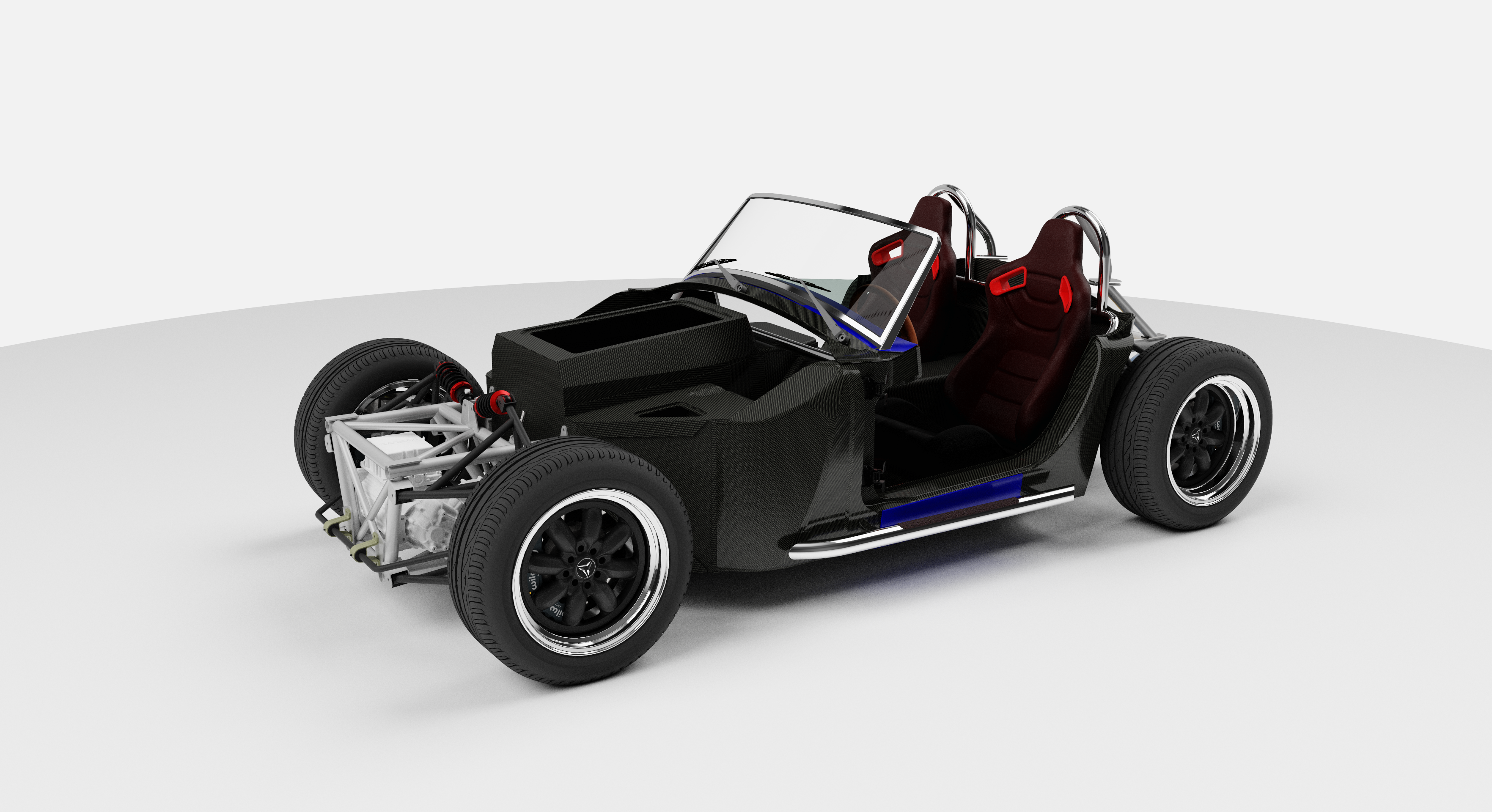 Bueno después de unos años desaparecido, estoy con un nuevo proceso con la construcción de un coche eléctrico de 600 cv, esta es su segunda versión, está inspirado en un Shelby cobra, pero es unos 30 centímetros más largo para aumentar el confort y tracción a las 4 ruedas, el modelado está hecho en Autodesk Inventor.
