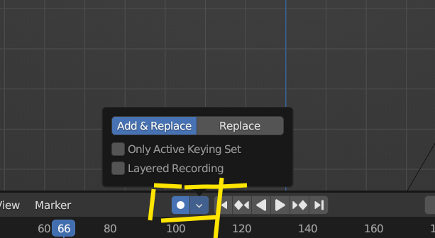 Blender agregará fotogramas clave para todas las propiedades en el conjunto de claves activo. Hay algunos conjuntos de claves integrados y también conjuntos de claves personalizados llamados conjuntos de claves absolutas. Para seleccionar y usar un conjunto de claves, configura el conjunto de claves activo en la ventana emergente Clave en el encabezado de la línea de tiempo, o en el panel Conjunto de claves, o presiona Shift-Ctrl-Alt-I en la ventana gráfica 3D.