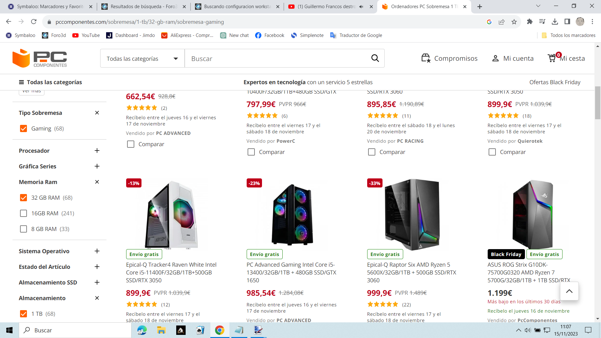 He seleccionado un gaming con 32GB de RAM y 1TB de almacenamiento.