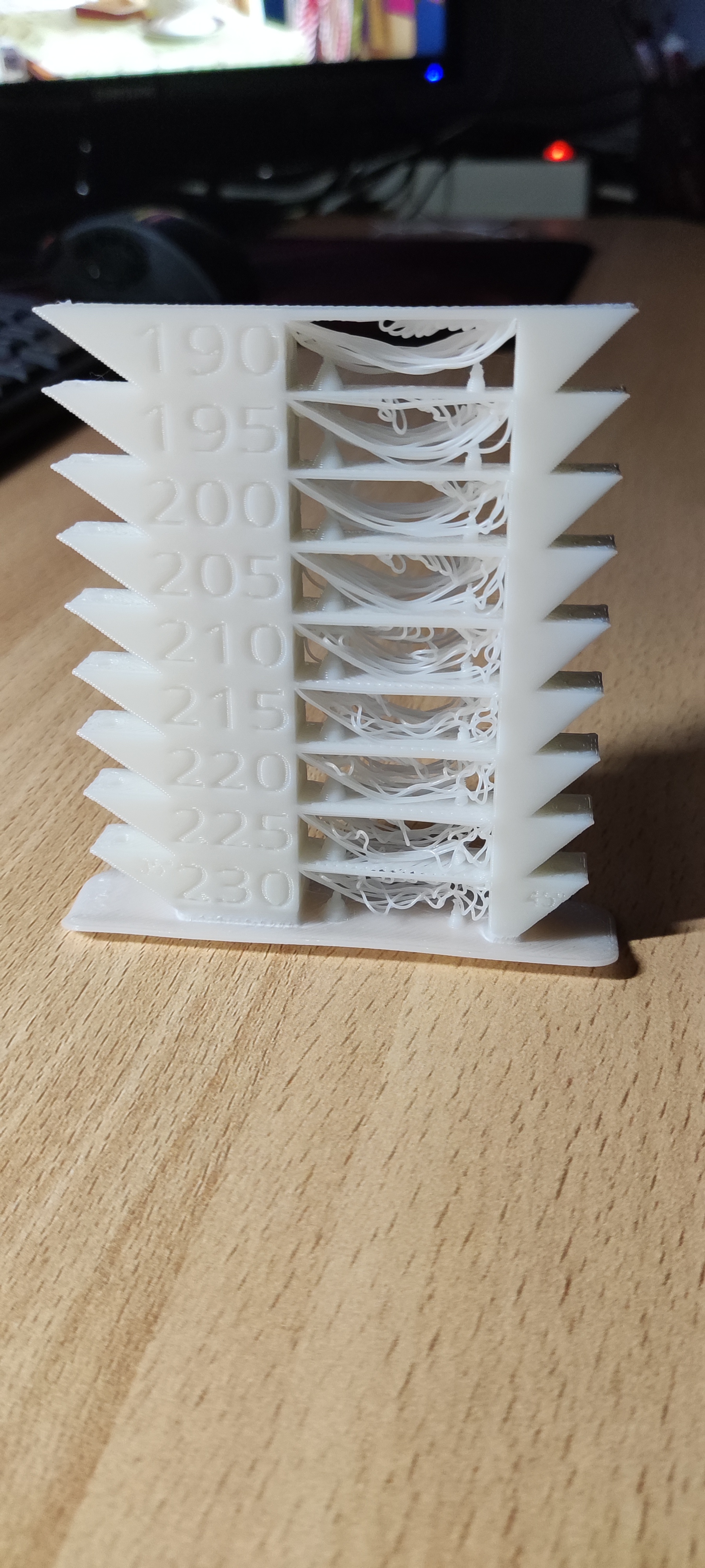 Hace poco me compré una Ender 3 V3 SE y mi primera prueba, después de haber calibrado la impresora, fue imprimir una de esas torres típicas de temperaturas. Adjunto una imagen para que veáis cómo quedó, con hilos derretidos de por medio y dejando caer material todo el rato en vez de pausar el trayecto por el que no tenía que imprimir.