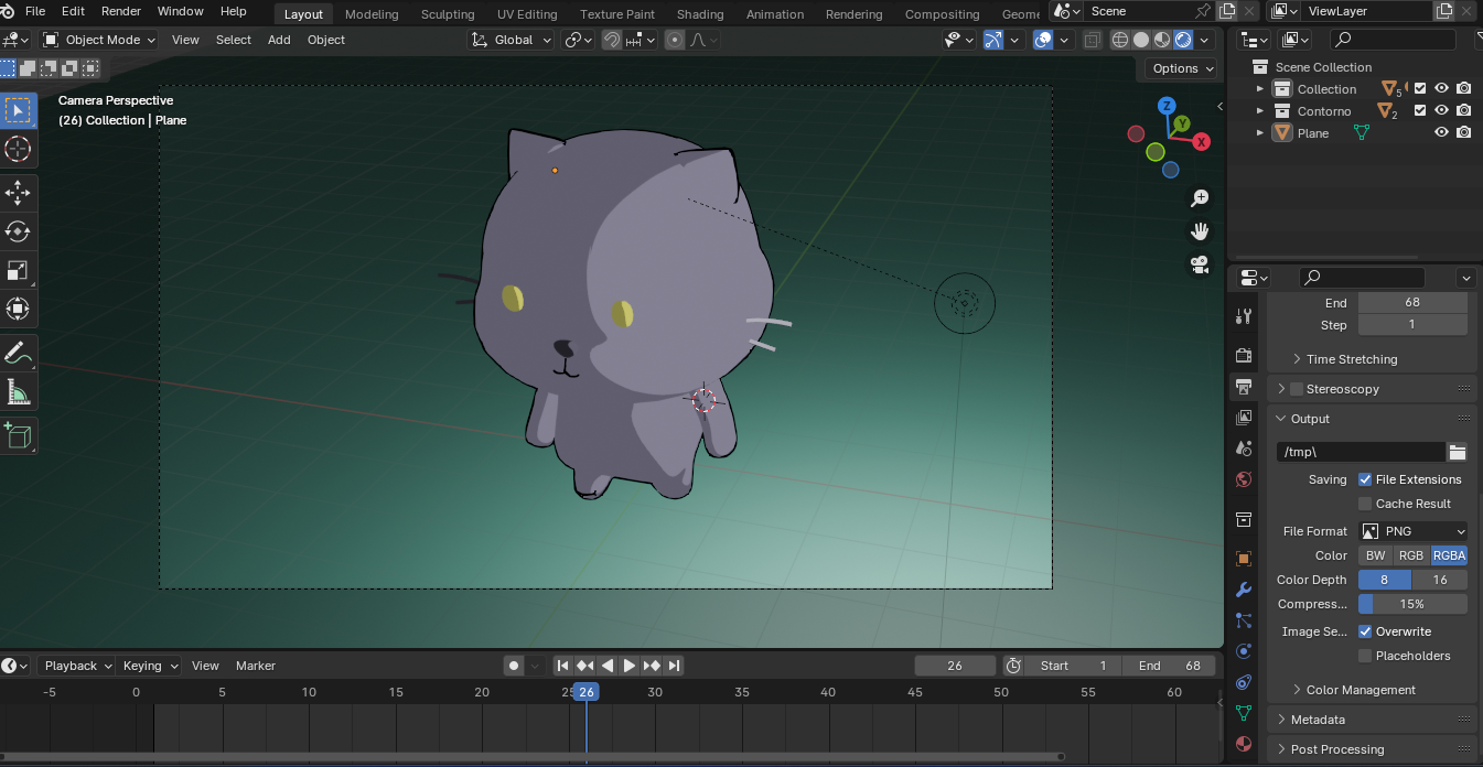 Hola, buenas. Soy nueva en Blender y en mi primera animación ocurrió algún error donde, al estar renderizado, se ve mucho más feo el gato, como más cuadrada la cabeza y los cachetes. También aparece contorno en donde en Blender no se veía.