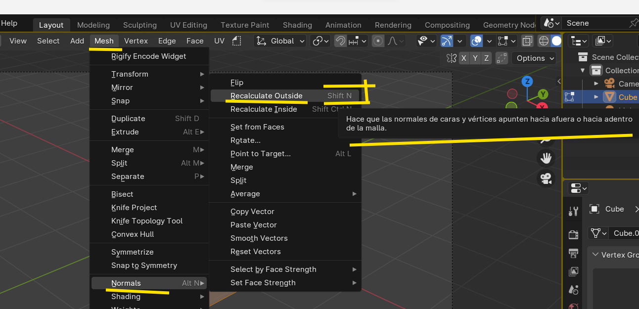 Vértices duplicados o normales invertidas en Blender