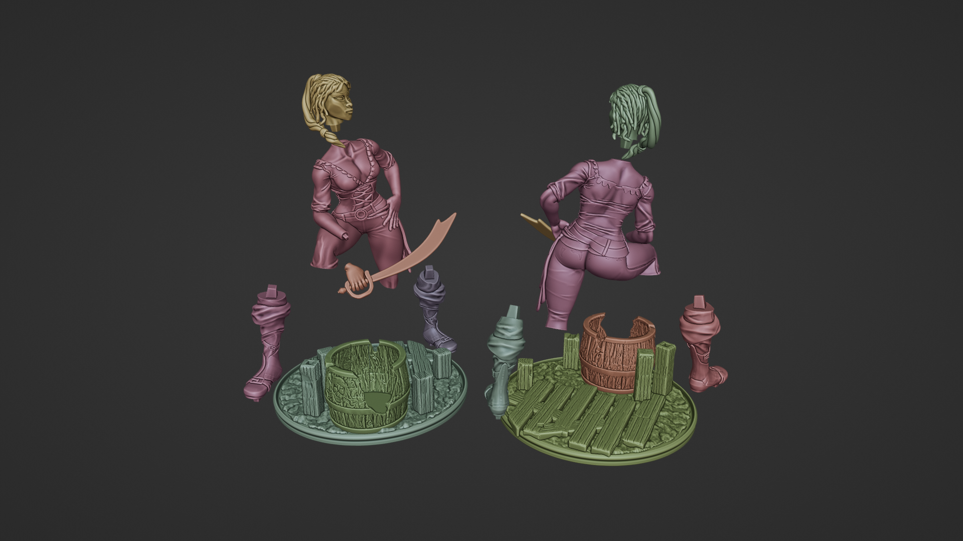 Solo la mano de la espada, ya me vi obligado a separarla, para poder imprimir la espada con soportes ligeros, dado que era una pieza fina.
