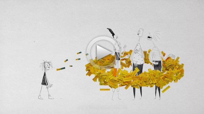 La estética mezcla la animación tradicional dibujada a mano con stop motion en recortes, utilizando una paleta en blanco y negro para los personajes humanos, combinada con colores saturados para las palabras habladas en diferentes idiomas. Estos colores a veces se usan juntos cuando la protagonista femenina habla, mostrando que aún habla francés con acento.