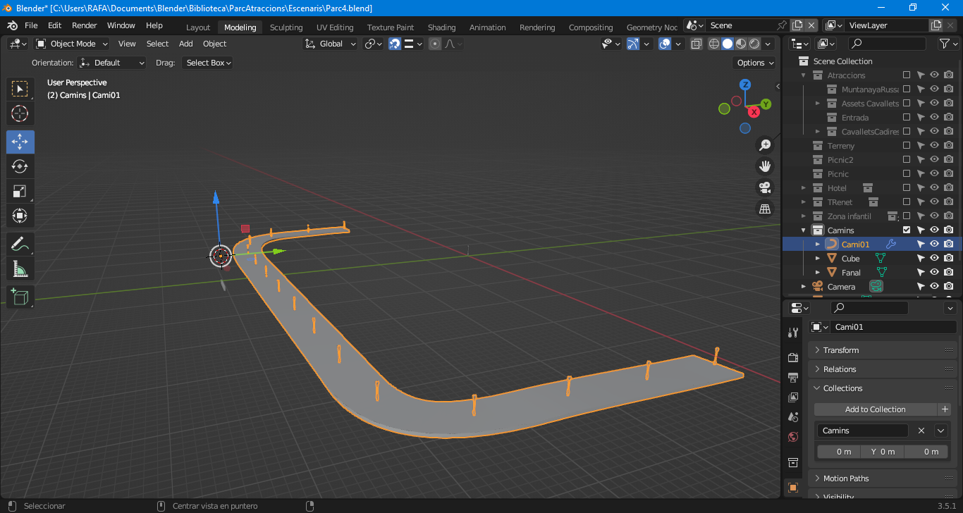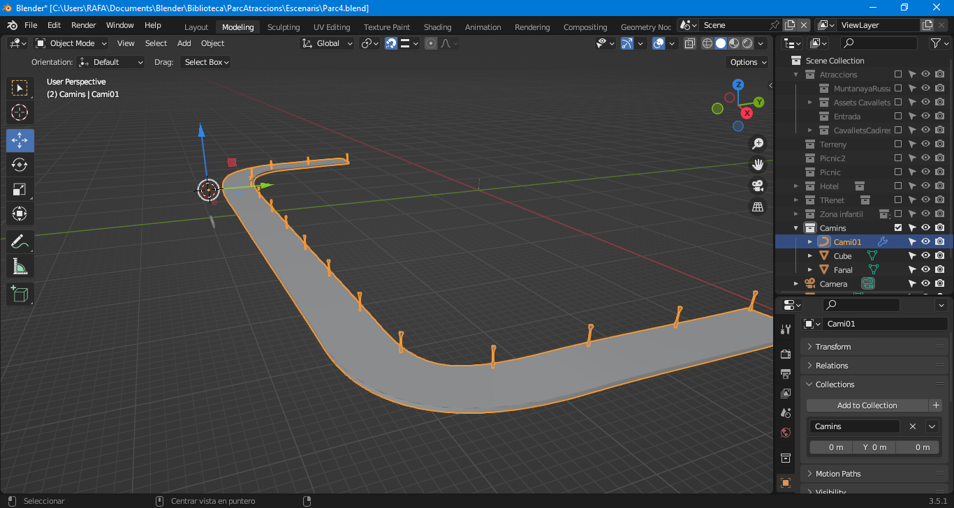Aquí va el árbol de nodos del camino con farolas que mencioné en el post anterior.