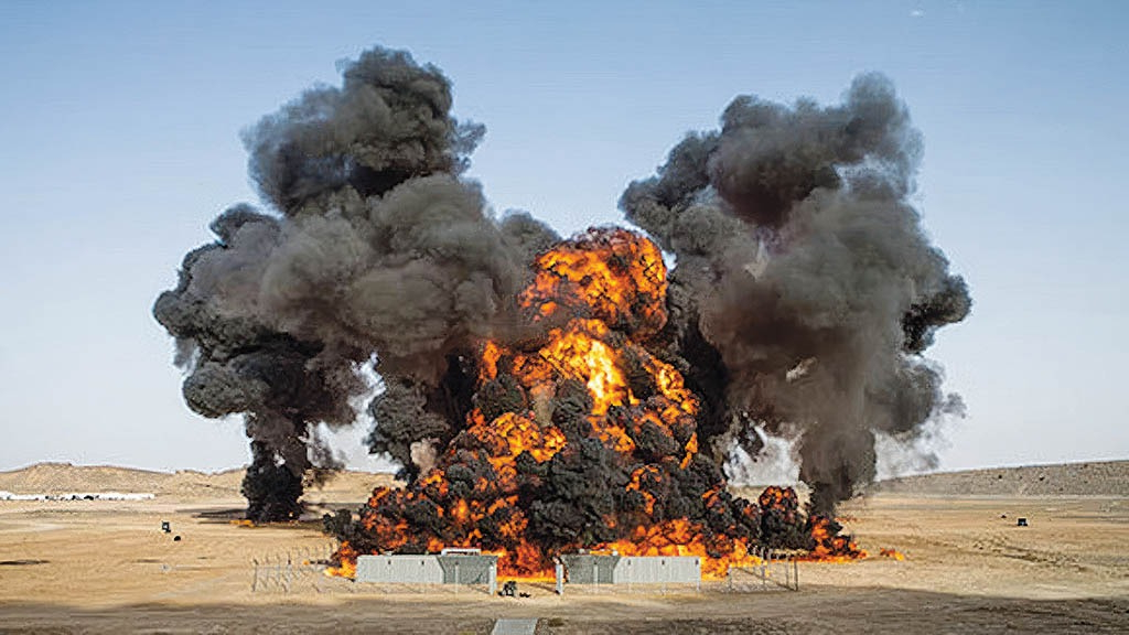 En una entrevista, Corbould contó cómo planeó esta explosión: no quería hacer solo una explosión enorme, sino algo que tuviera forma y progresión, que se extendiera por toda el área, que era del tamaño de diez campos de fútbol. Además, aprovecharon la ventaja de estar en el desierto, sin edificios cercanos, lo que les dio más libertad para trabajar. También usaron detonadores programables, que permiten controlar la explosión con una precisión de milésimas de segundo.