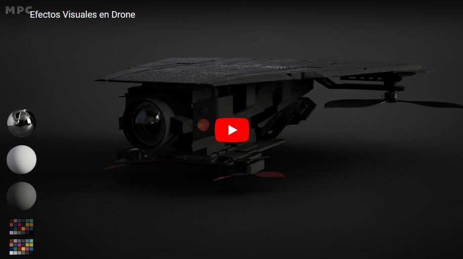 El dron fue creado digitalmente con un alto nivel de detalle, simulando movimientos naturales y precisos que lo hacen parecer una extensión del entorno real.