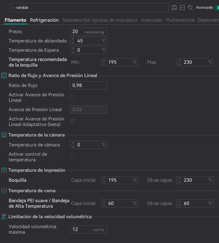 Temperatura de capa inicial 195 -- Temperatura de otras capas 230 ??????