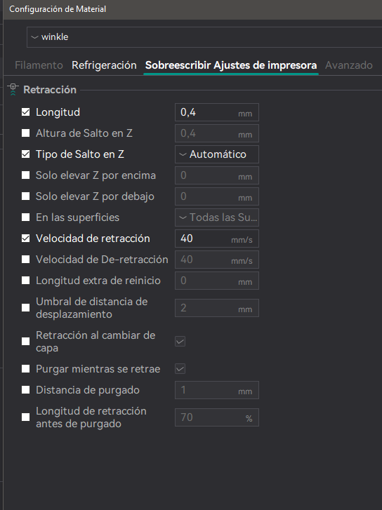 Os paso configuración del Orca hice prueba de retracción en orca y me salió hilo como cuando en cura y siguiendo y ojeando como apañar el programa. Ya me diréis si debo modificar, esto es lo que comentaba el orca es un mundo.