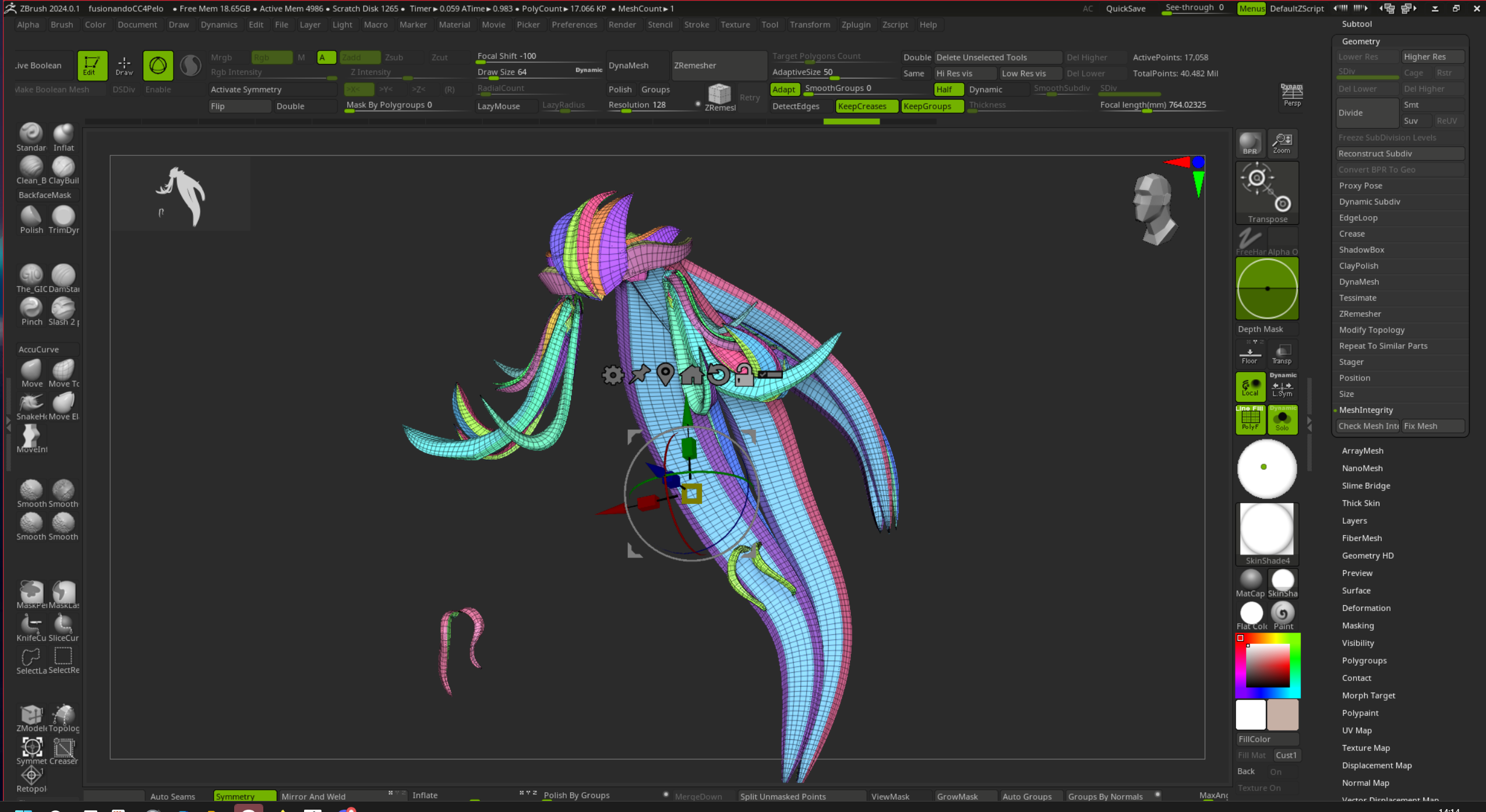 La parte del pelo que muestro está dividida por varias subtools mergeadas.
