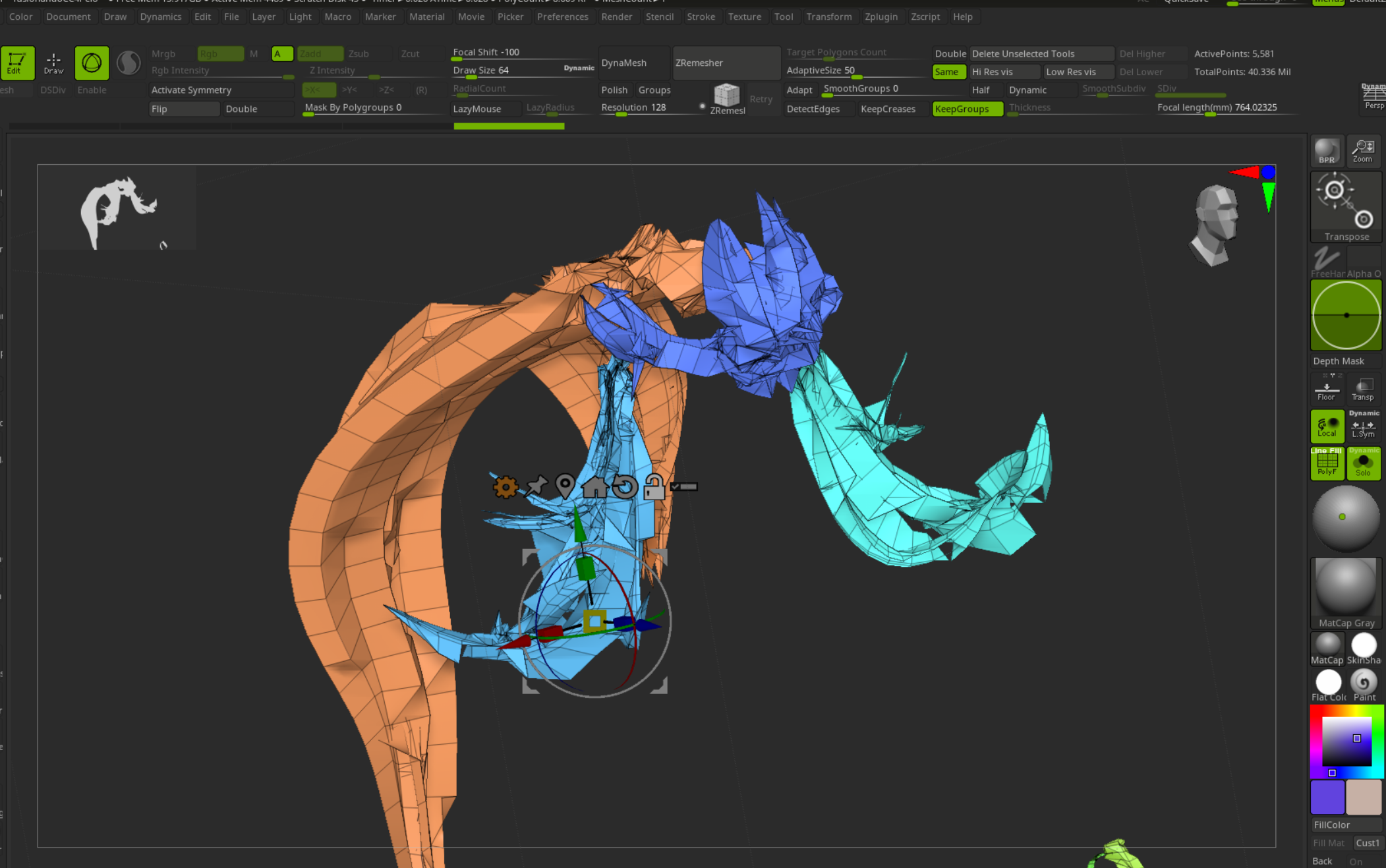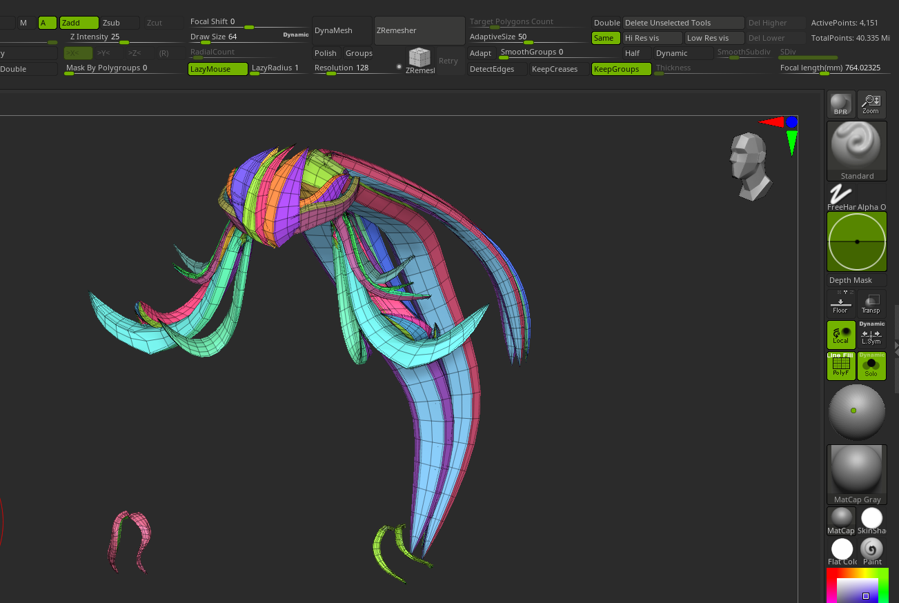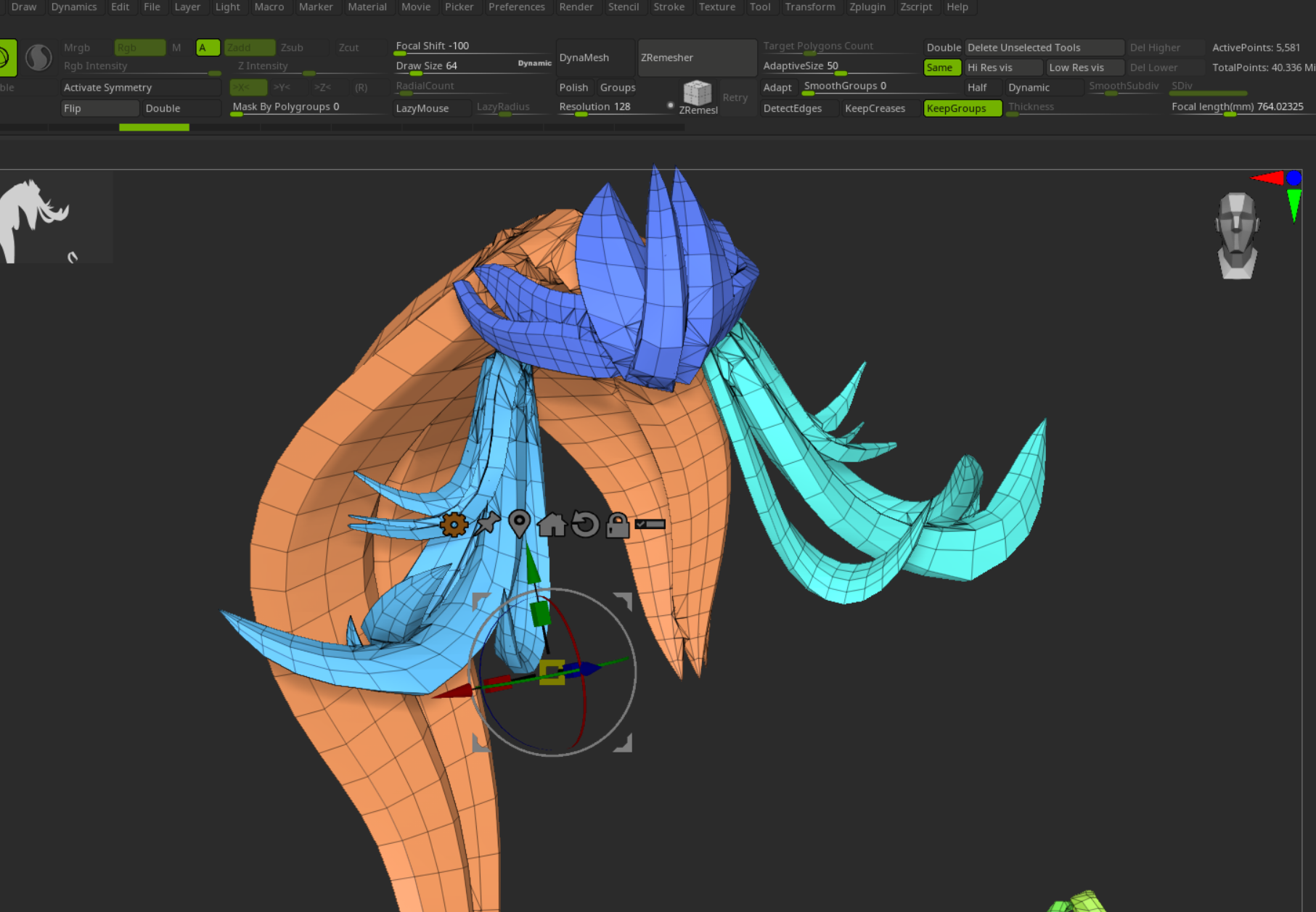 1. ZBrush Modelo con zremesher y subdiviciones se torna lento trabajar