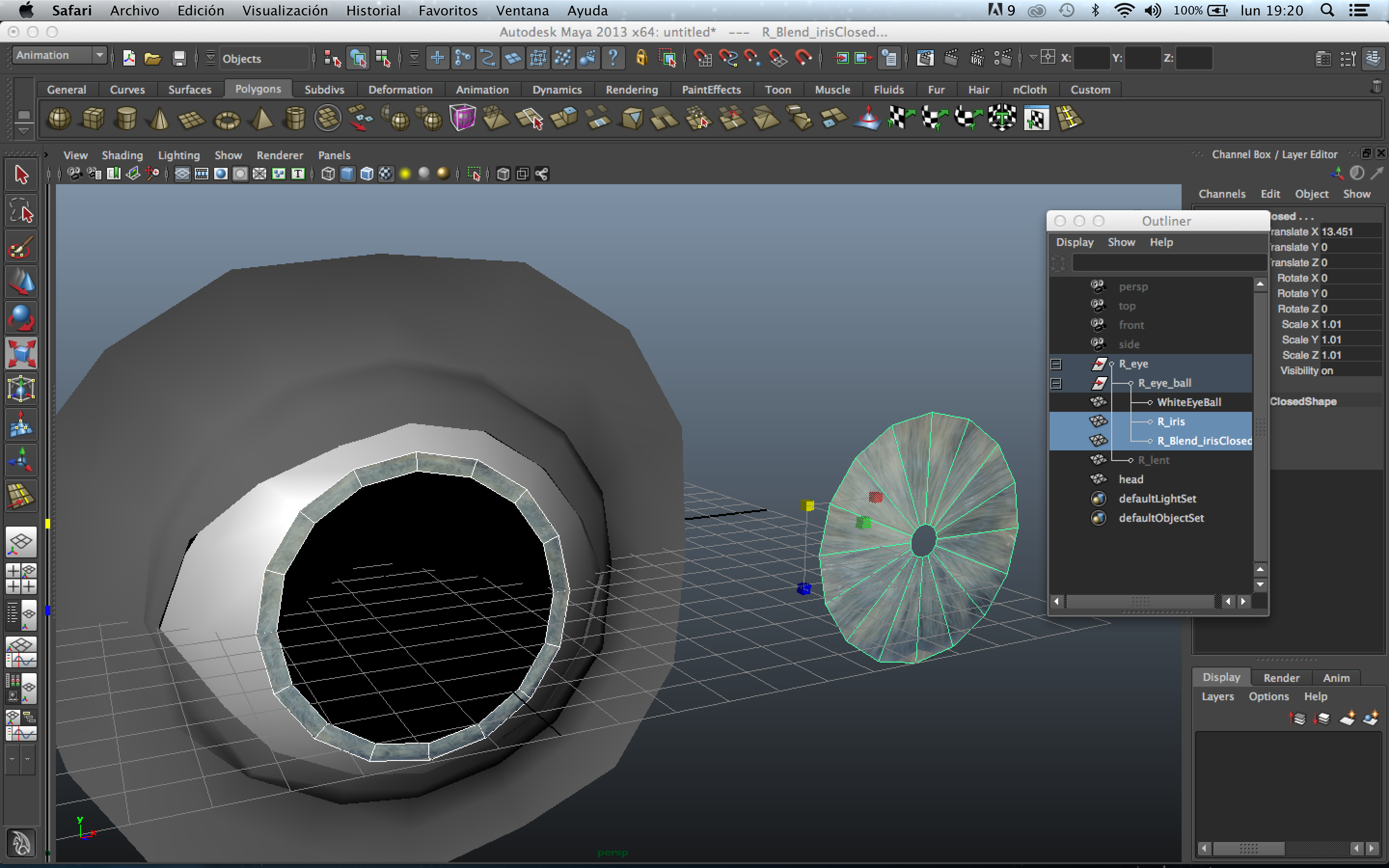 Hola a todos, estoy intentando realizar una animación del iris del ojo que veréis en la imagen, pero a la hora de aplicar el blend shape en los dos iris, la selección me sale al revés, es decir, como veréis uno está de color verde que sería el (source) y el otro el que está seleccionado en blanco (target), pero para la correcta realización del proceso que sigo, tendrían que estar al revés, el que aparece en verde ser el blanco y el blanco el verde, como podría a hacerlo. Adjunto fotografía.
