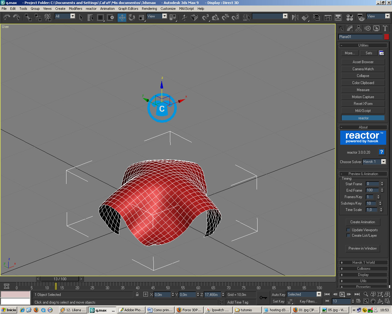 - Aplicar el modificador Reactor Cloth al plano para que sea tela simulada.